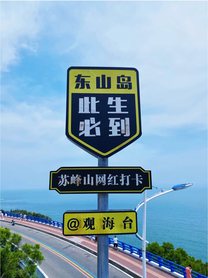 08:30左右东山岛,游览最美环岛公路【苏峰山(观光车10元每人自理)--【网红打卡点】,东山环岛路苏峰山段颜值爆表,环海又环山, 犹如一条美丽的珍珠项链,挂在苏峰山上!这里看得见青山,看得见碧海,还可以看得见蜿蜒的海岸线!登上峰巅,沧海茫茫;晴日,则浮光耀金,帆影往来;台风至则骇浪惊涛,裂礁喷雪,云奔海黑,天地动摇;苏峰山万窍怒号,使人从它和大海的搏斗中感受到无穷的力量。