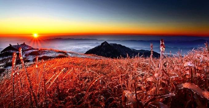 武功山冬:12-2月芦苇草枯黄,偶尔下雪