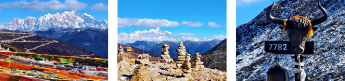 加吾拉山口,是前往珠穆朗玛峰大本营途中的一个垭口。在世界上**可以观赏4座8000米级雪峰的观景台(从左向右排列的顺序是:玛卡鲁峰、洛子峰、珠穆朗玛峰、卓奥友峰)。