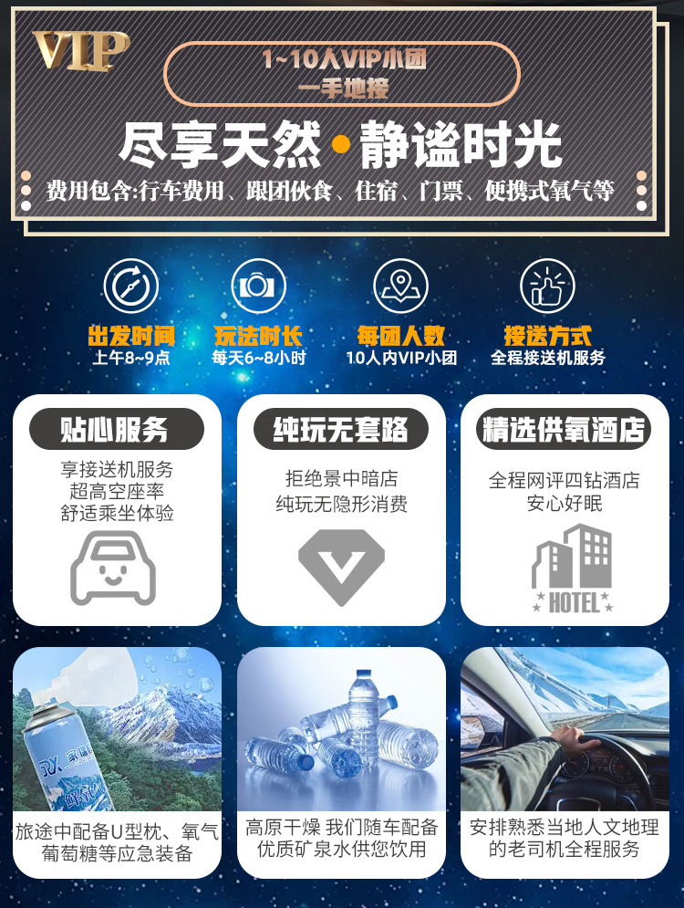 3、本线路中的淡季门票价格为参考价格,因从2018年淡季开始,西藏政府会颁布惠游政策,实施一批西藏境内景区免费的政策补贴,具体实施惠游政策时间段以西藏政府公布为准,因此本行程报价未核算部分补贴景区门票费用,任何优惠证件均无差价可退,不可抗原因无法游览或主动放弃游览的,无费用可退,具体补贴景区为西藏旅游政务网中披露的为准,如有问题,可前往查询;如因景区政策性临时调价请客人自补差价;