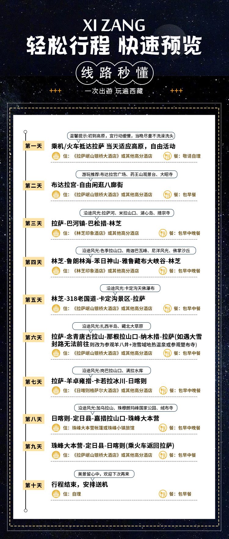 2、本产品全程门票:巴松错、鲁朗林海、苯日景区、卡定沟、雅鲁藏布大峡谷、布达拉宫、大昭寺、纳木措、羊卓雍措、卡若拉冰川、扎什伦布寺、珠峰大本营、珠峰进山费;