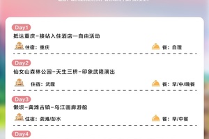 早餐:酒店提供 午餐:自理 晚餐:自理 住:重庆