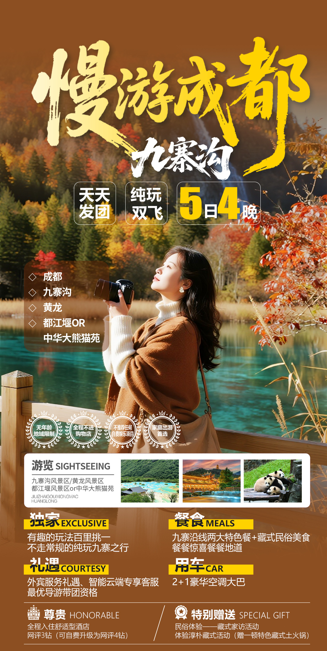 ④11月15日-12月13日全程优惠共退(九寨退0/黄龙退0/都江堰或熊猫乐园10)