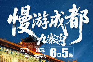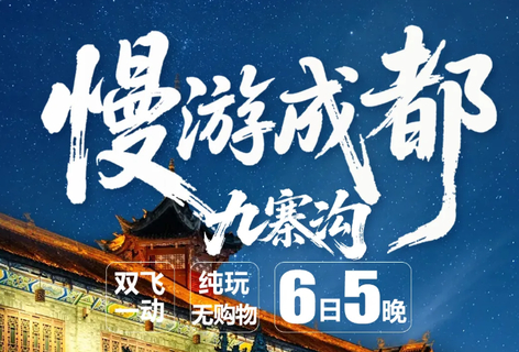 [游览] — 九寨沟风景区、黄龙风景区、都江堰风景区or中华大熊猫苑 [尊贵] — 全程入住舒适型酒店,携程指定3钻(可自费升级为携程4钻) [纯粹] — 无年龄地域限制,全程不进购物店,不推荐任何自费娱乐项目,家庭出游首选 [独家] — 有趣的玩法百里挑一,不走常规的纯玩九寨之行 [餐食] — 九寨沿线两大特色餐+藏式民俗美食,餐餐惊喜餐餐地道 [礼遇] — 外宾服务礼遇、智能云端专享客服、最优导游带团资格、豪华空调大巴