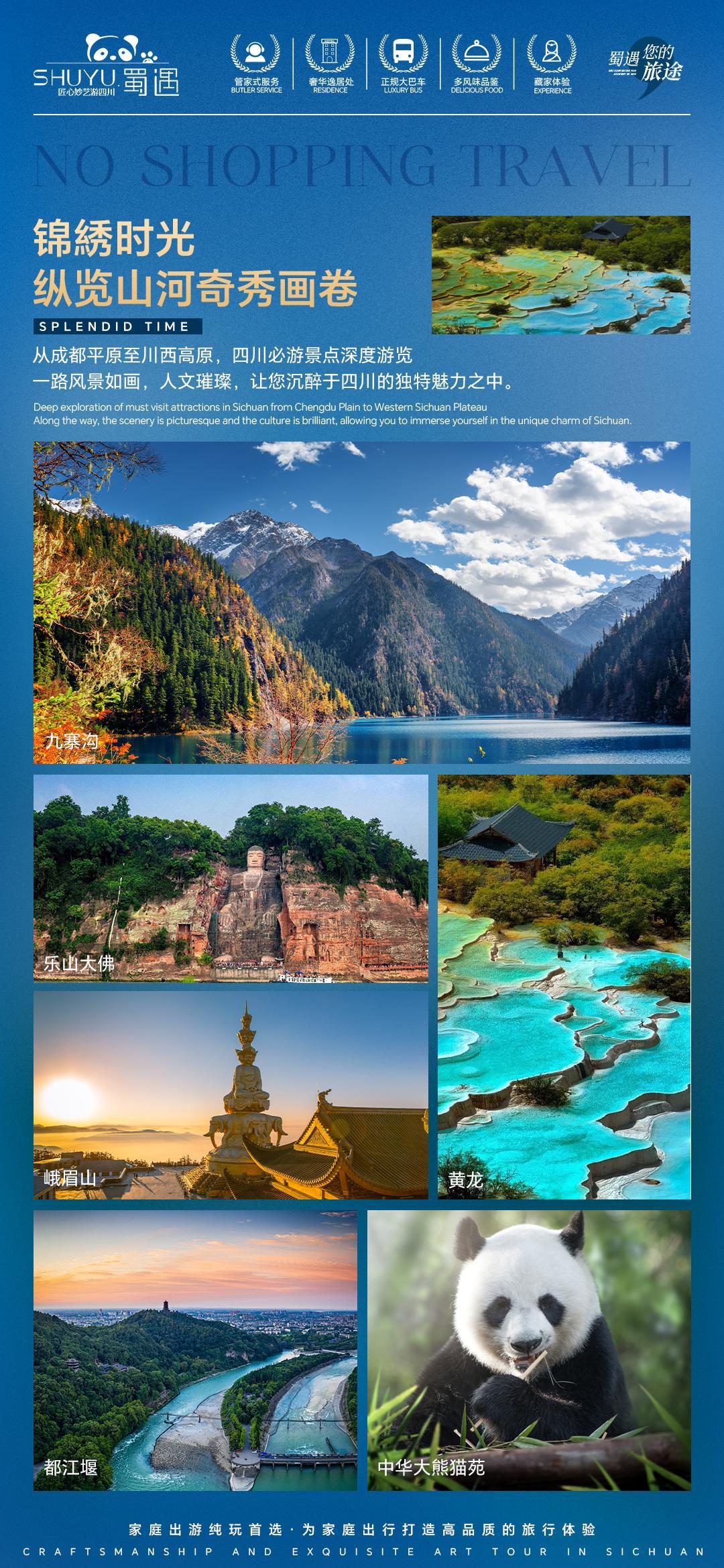[景点包含] 景区包含黄龙门票、九寨沟门票、都江堰门票or中华大熊猫苑门票、峨眉山门票、乐山大佛门票(景点首道大门票)