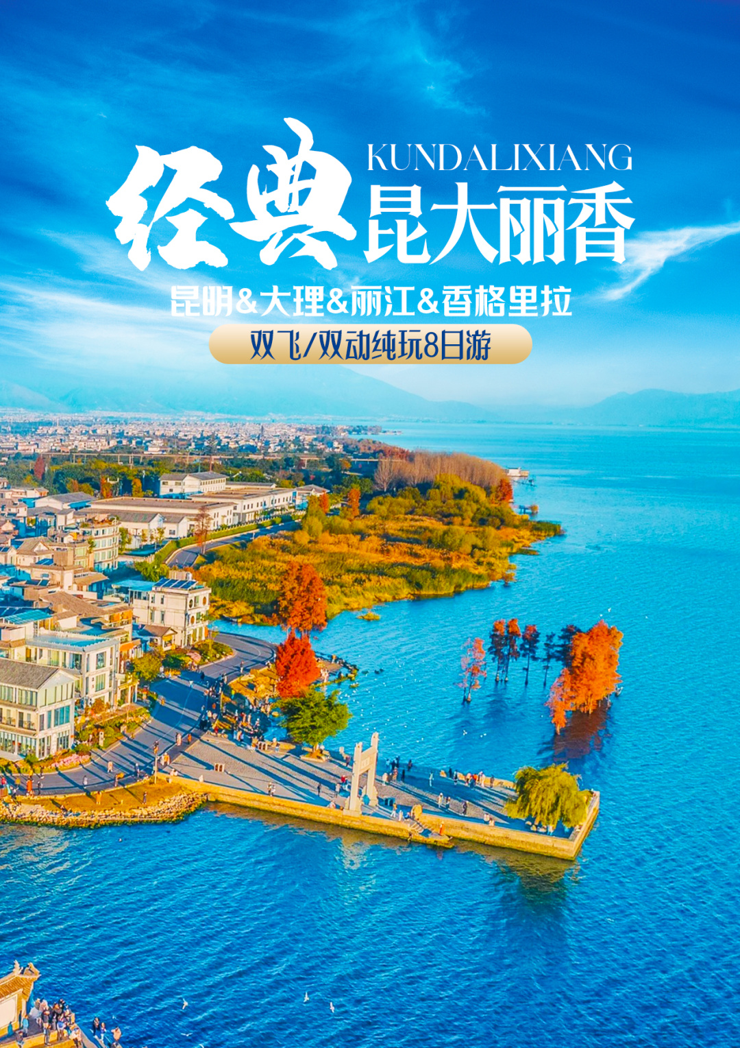 ▶ 祥云→大理理想邦(大理圣托里尼)→双廊古镇→洱海生态廊道骑行→旅拍航拍→换装打跳→小马车→大理酒店
