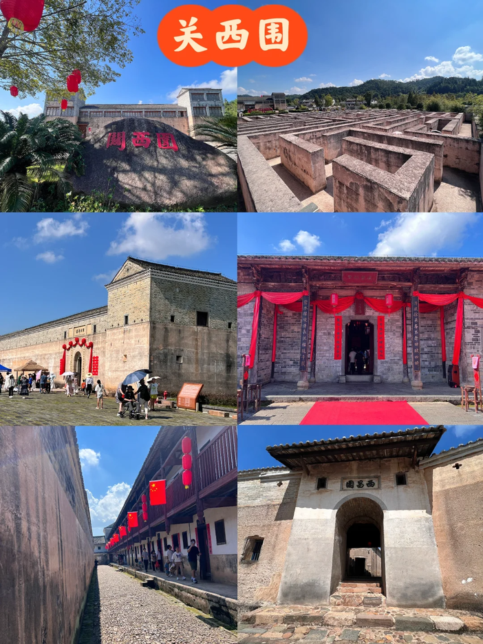 后前往浏览【关西新围】是当地一位经营竹木生意发家的富商。传说他因妻子与当地土匪头目有染,为保家族安全与尊严,决心建造一座坚固无比、可抵御外敌的宏大围屋。他耗资百万,历时近三十年,终于建成了这座集居住、防御、祭祀、娱乐于一体的家族城堡。被誉为“东方的古罗马城堡”、“散落在民间的故宫”,以保存完整、风格独特、规模宏大、功能齐全而闻名于世,在中国传统古民居建筑中独树一帜。景区内有龙南客家织带技艺展示、赣南客家围屋营造技艺展示馆、客家竹编以及客家民俗馆;关西围屋不仅是客家迁徙历史的见证,更展现了传统建筑与自然环境的和谐共生。关西围新围被誉为“散落民间的皇宫”是国内现存最完好、功能最齐全规模最宏大的单体方形围屋超大气又细节超好看雕花门框+镂空花窗+九井十八厅,故事感一秒到位!