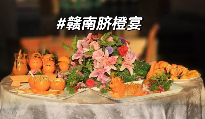 在关西围内享用特色客家脐橙主题宴席,融合围屋文化与脐橙风味。