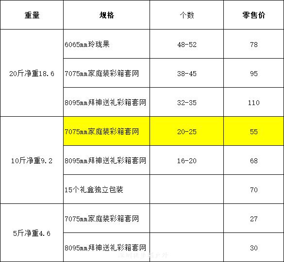 统一只发55元一箱10斤,有20-25个果,直径约70-80毫米的