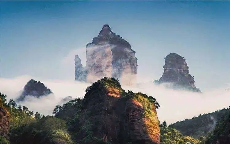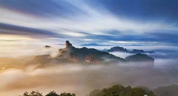 世界地质公园——【丹霞山】丹霞山是世界“丹霞地貌”命名地。丹霞山由680多座顶平、身陡、麓缓的红色砂砾岩石构成,“色如渥丹,灿若明霞”,以赤壁丹崖为特色。据地质学家研究表明:在世界已发现1200多处丹霞地貌中,丹霞山是发育最典型、类型最齐全、造型最丰富、景色最优美的丹霞地貌集中分布区。长老峰景区分上、中、下三个景观区:下层景观区有始建于北宋的锦石岩石窟寺、长天一线、龙磷片石、五色间错大斑石等典型的赤壁丹崖景点;中层为别传禅寺景观层,有岭南十大禅林之一的别传禅寺和鸳鸯树等景点;登丹梯铁索即至上层景观区,长老峰、海螺峰、海珠峰三峰并峙,环顾四周,丹霞秀色,一览无遗。其中观日亭是晨观日出,昏赏晚霞的好去处。