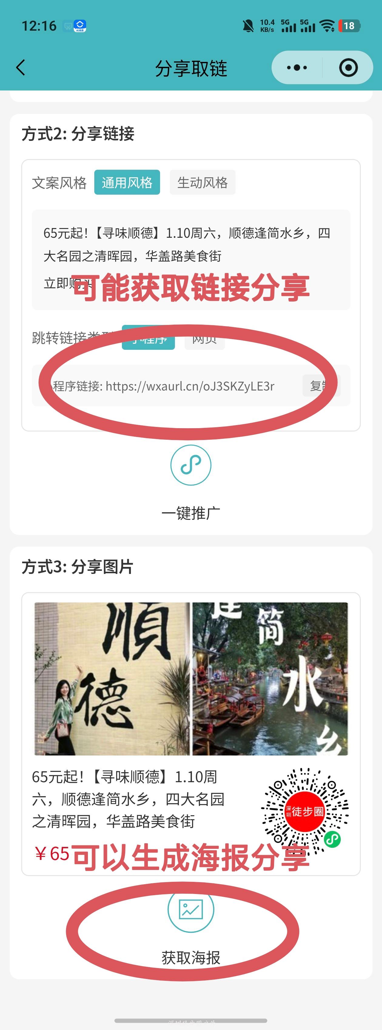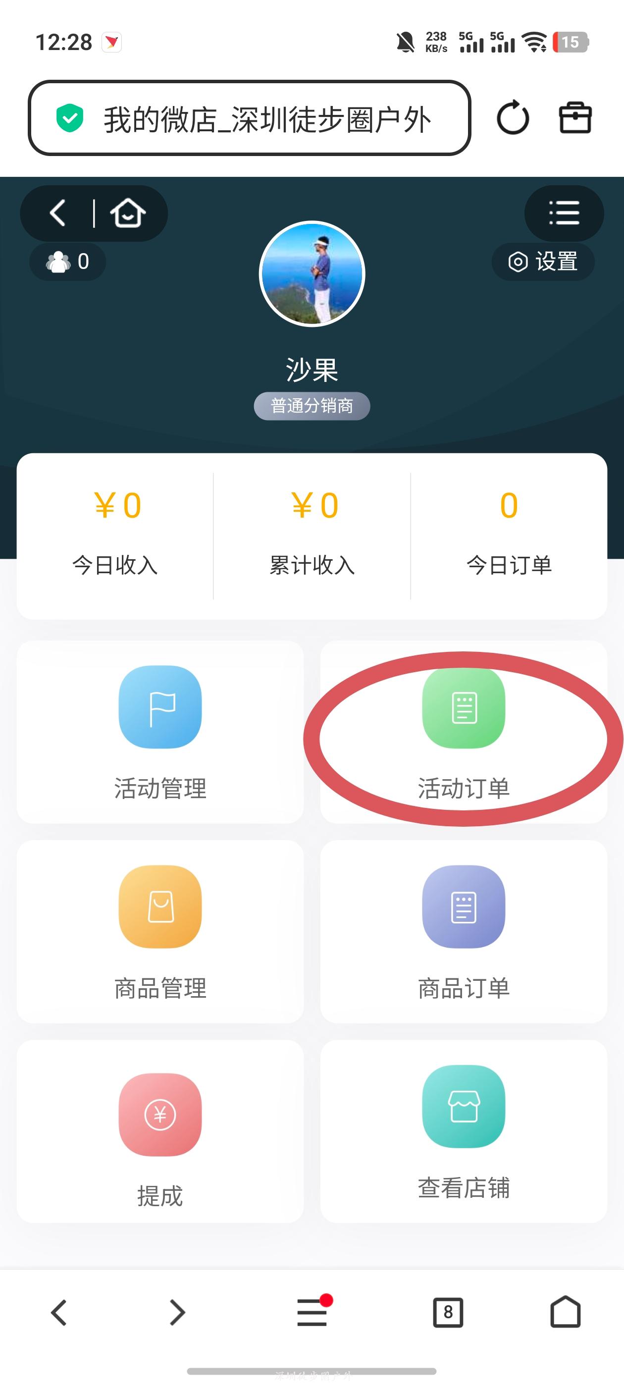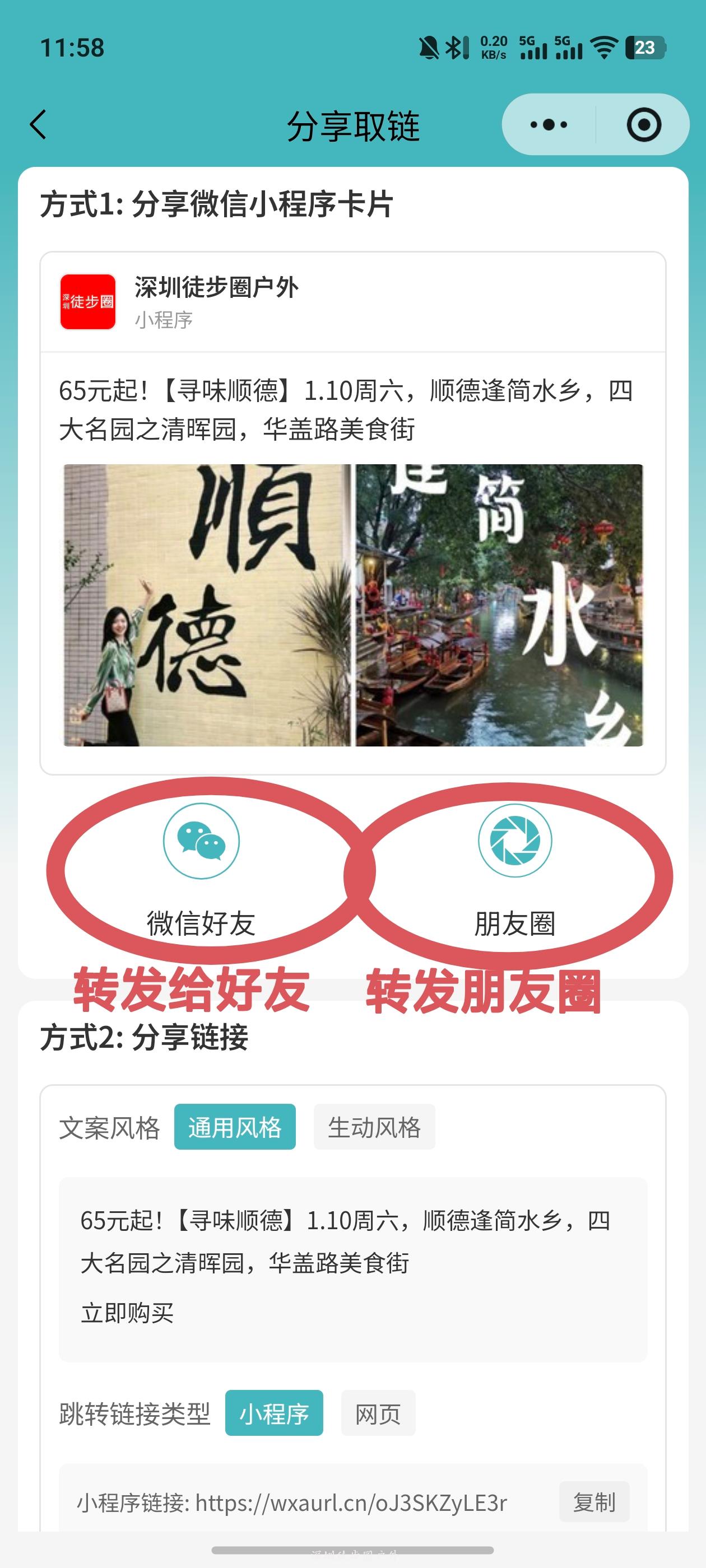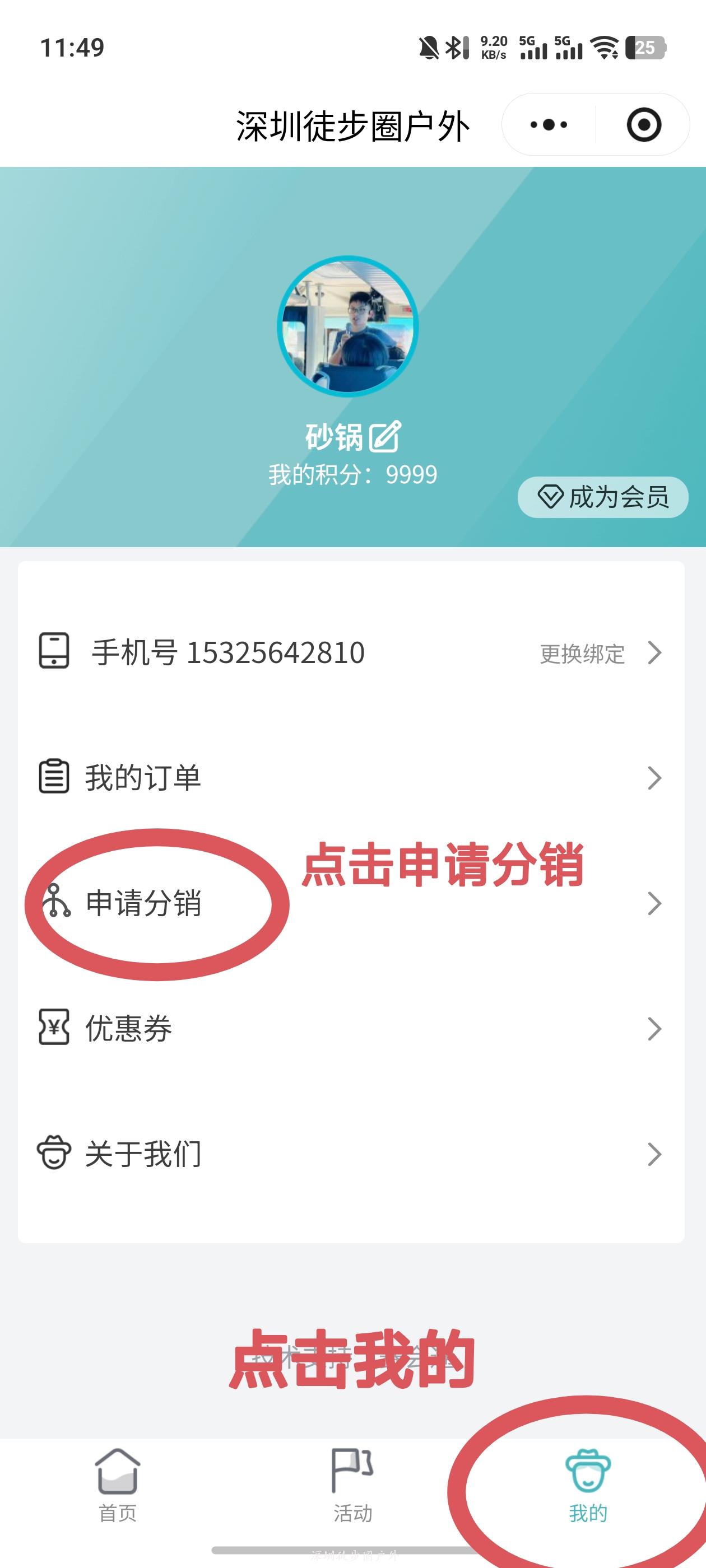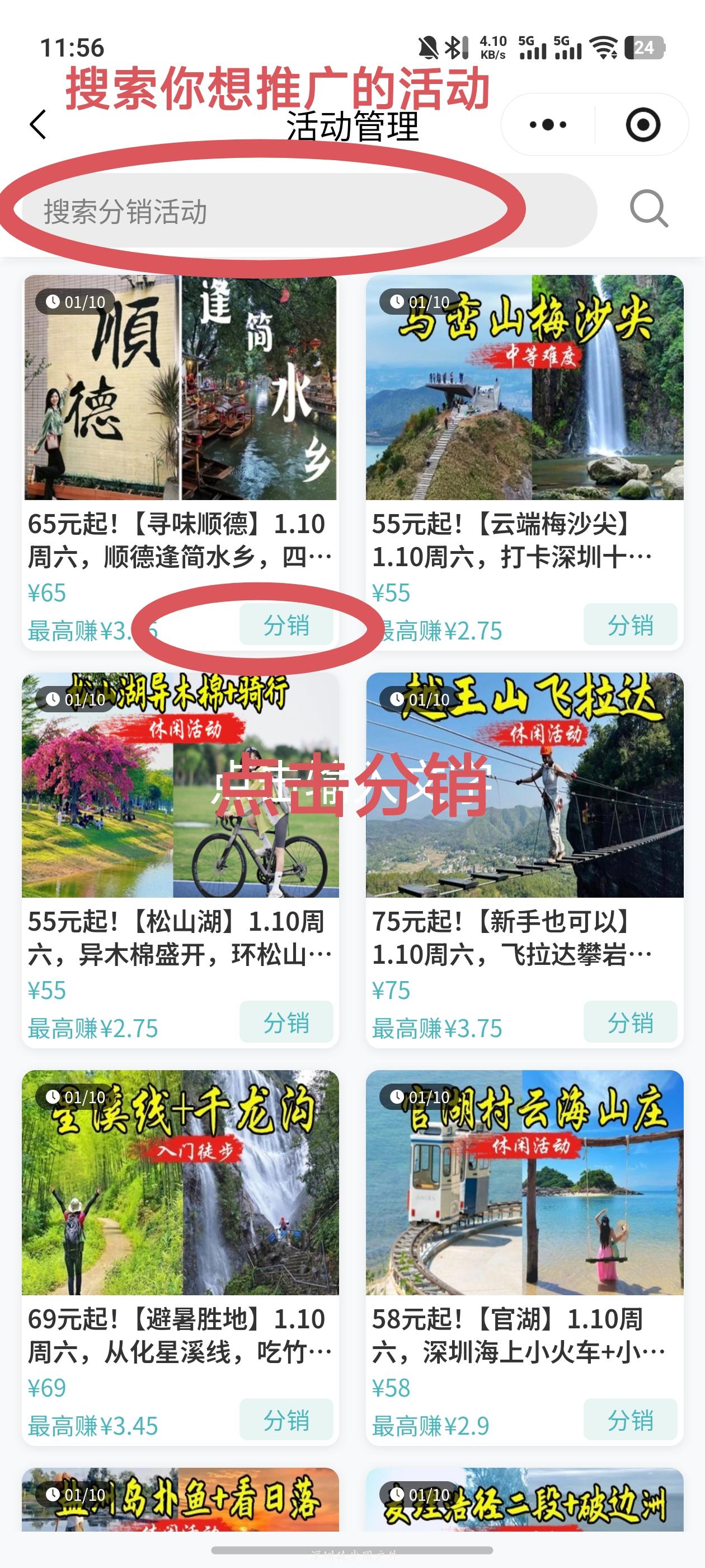 只要没有被其他分销员锁粉的小程序用户,通过上面第三步的方式点进去下单,都会被永久锁粉,后续不管TA从任何渠道进入【深圳徒步圈户外】小程序报名,你都有佣金(永久)。