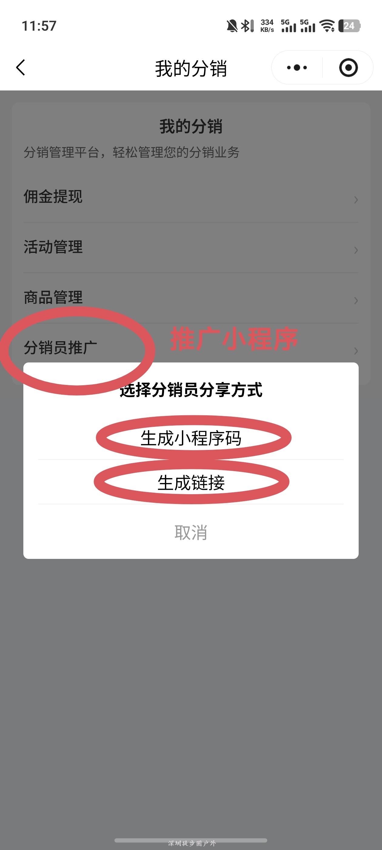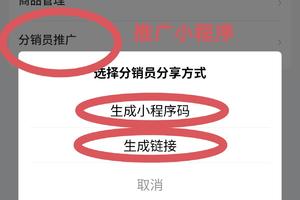 ② 通过“我的分销”——分销员推广——生成小程序码 / 生成链接转发。