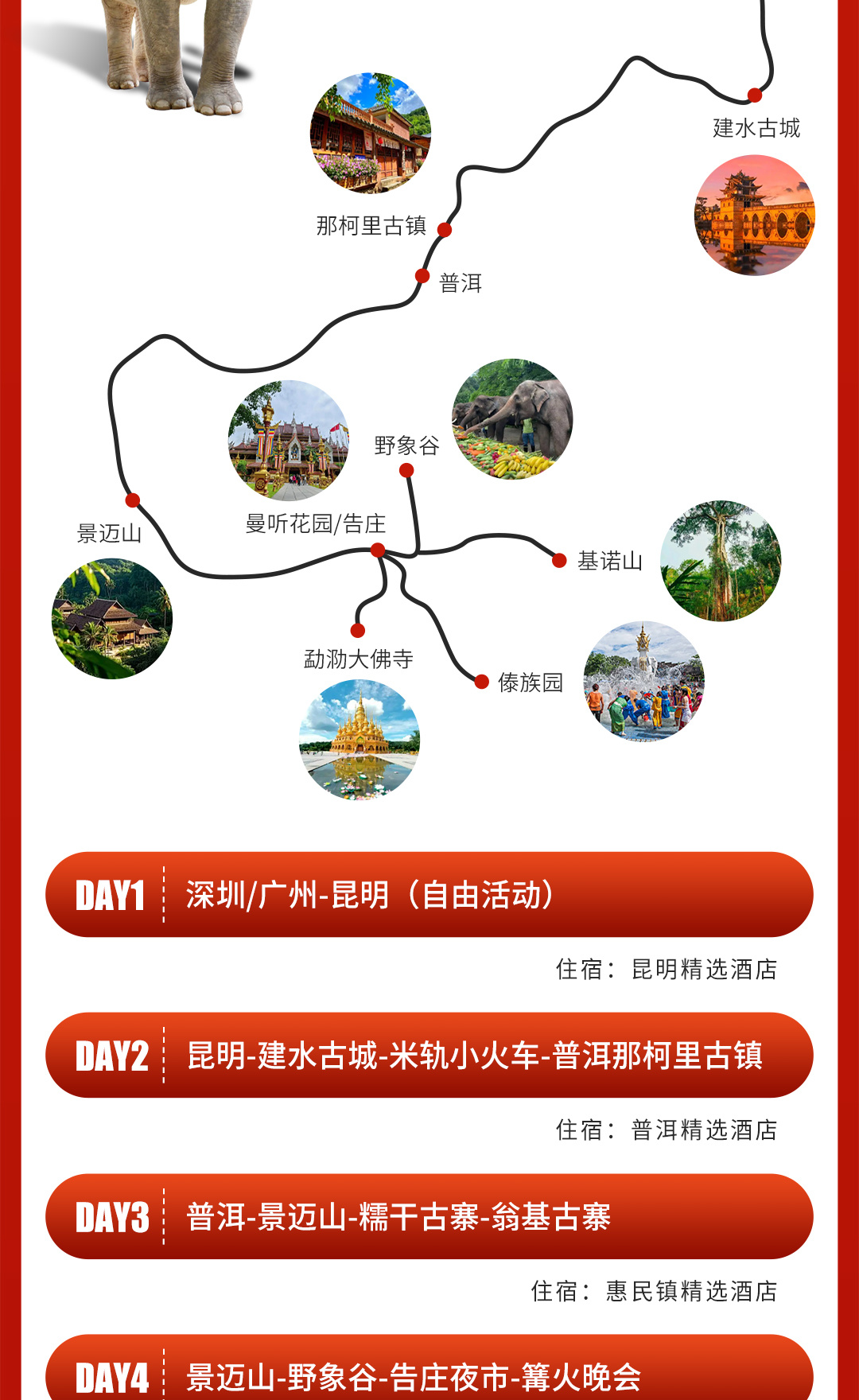 - 交通提示:版纳至昆明动车票需提前预订,预留充足时间前往高铁站;携带好个人行李,避免遗漏。