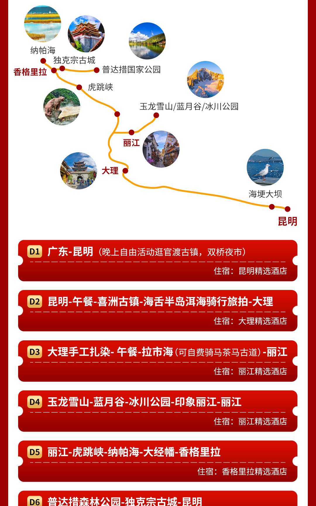 - 全天核心景点:玉龙雪山全景游(车程50分钟)