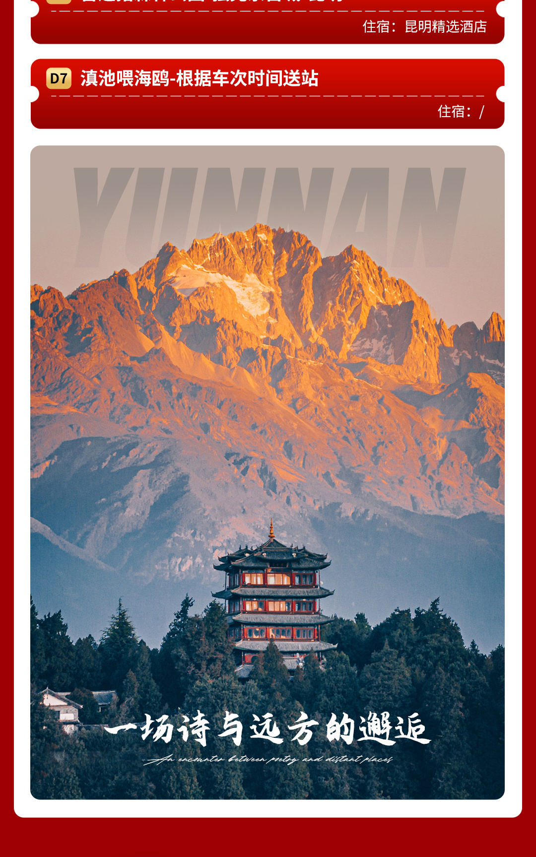 - 后续:根据返程车次时间,安排专车送站,结束愉快的云南7日之旅。