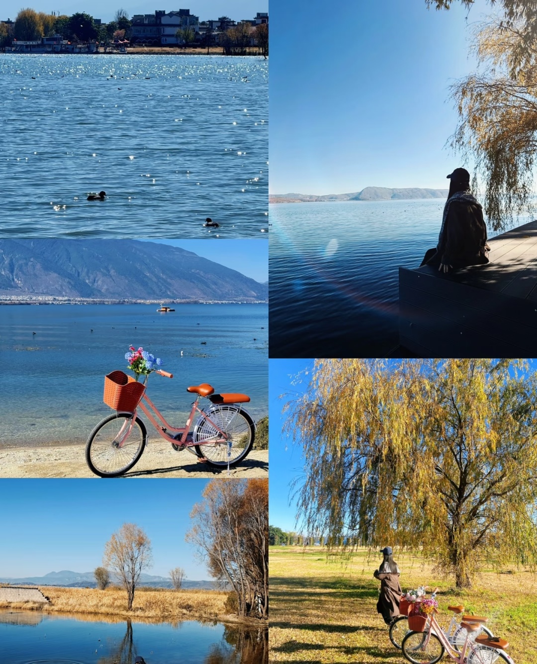 2. 海舌半岛:洱海西岸的天然半岛,形似“舌头”伸入洱海,是洱海观景的绝佳位置。这里水质清澈,岸边垂柳依依,远处苍山十九峰连绵起伏,构成“山环水抱”的绝美画卷。安排洱海骑行旅拍,情侣可骑着单车沿半岛公路穿行,沿途拍摄蓝天、碧水、苍山、白族民居同框的浪漫画面,定格专属二人的美好瞬间。结束后前往大理古城入住,晚上自由逛大理古城;