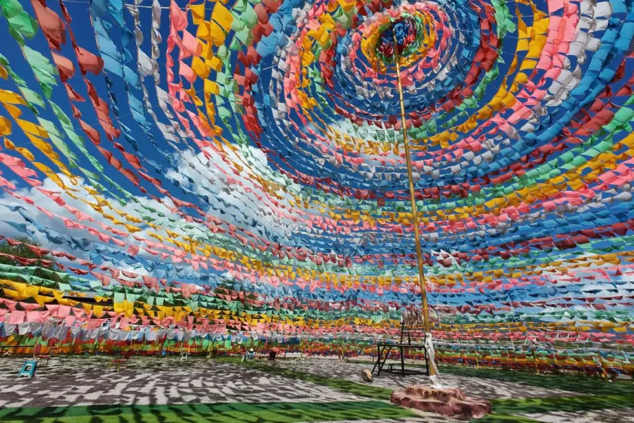 2. 大经幡:藏区最具代表性的文化符号之一,在纳帕海周边的山巅或路口,成片的经幡随风飘扬。经幡上印有经文、吉祥图案,藏民认为风每吹动一次经幡,就相当于诵读一次经文,祈求平安吉祥。情侣可在此拍照留念,感受藏区的神圣氛围。
