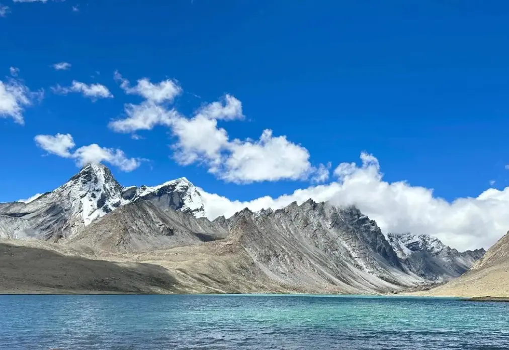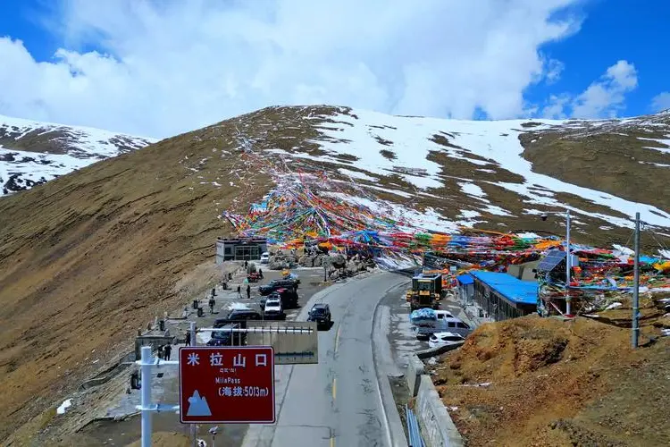 海拔5013米,周围雪山林立,山峰巍峨高耸,终年积雪不化,在阳光照耀下闪耀着银色光芒