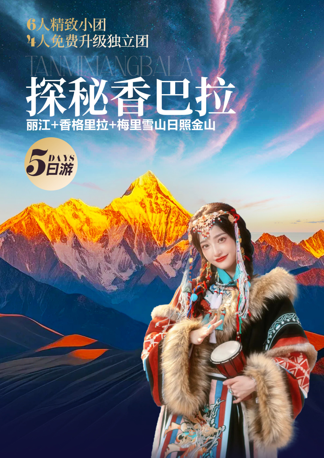 香格里拉4钻酒店:第五颗陨石·紫微酒店/松赞林藏地圣莲藏式庭院酒店/春和景明智慧酒店/香格里拉兰欧国际酒店/香格里拉浩枫温德姆酒店或其他同级酒店。