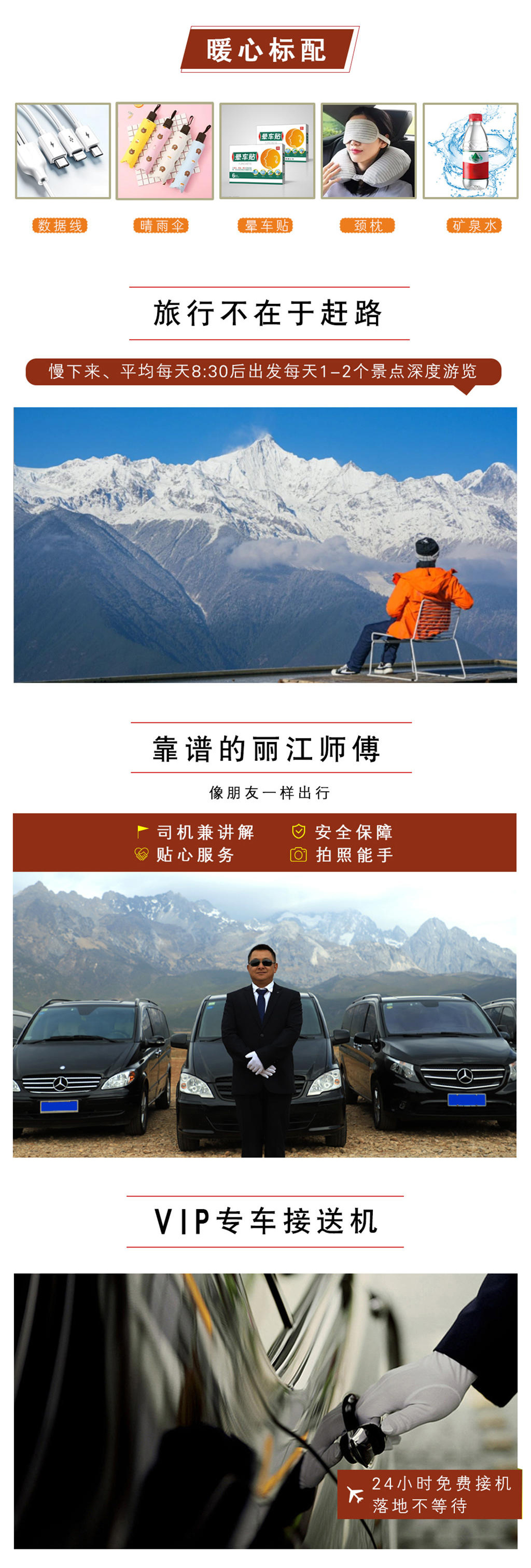 3、我们会根据交通工具离丽的时间,提前1-2个小时出发送您去机场或火车站,请您核对好航班起飞时间(列车发车时间),以免耽误您的行程。