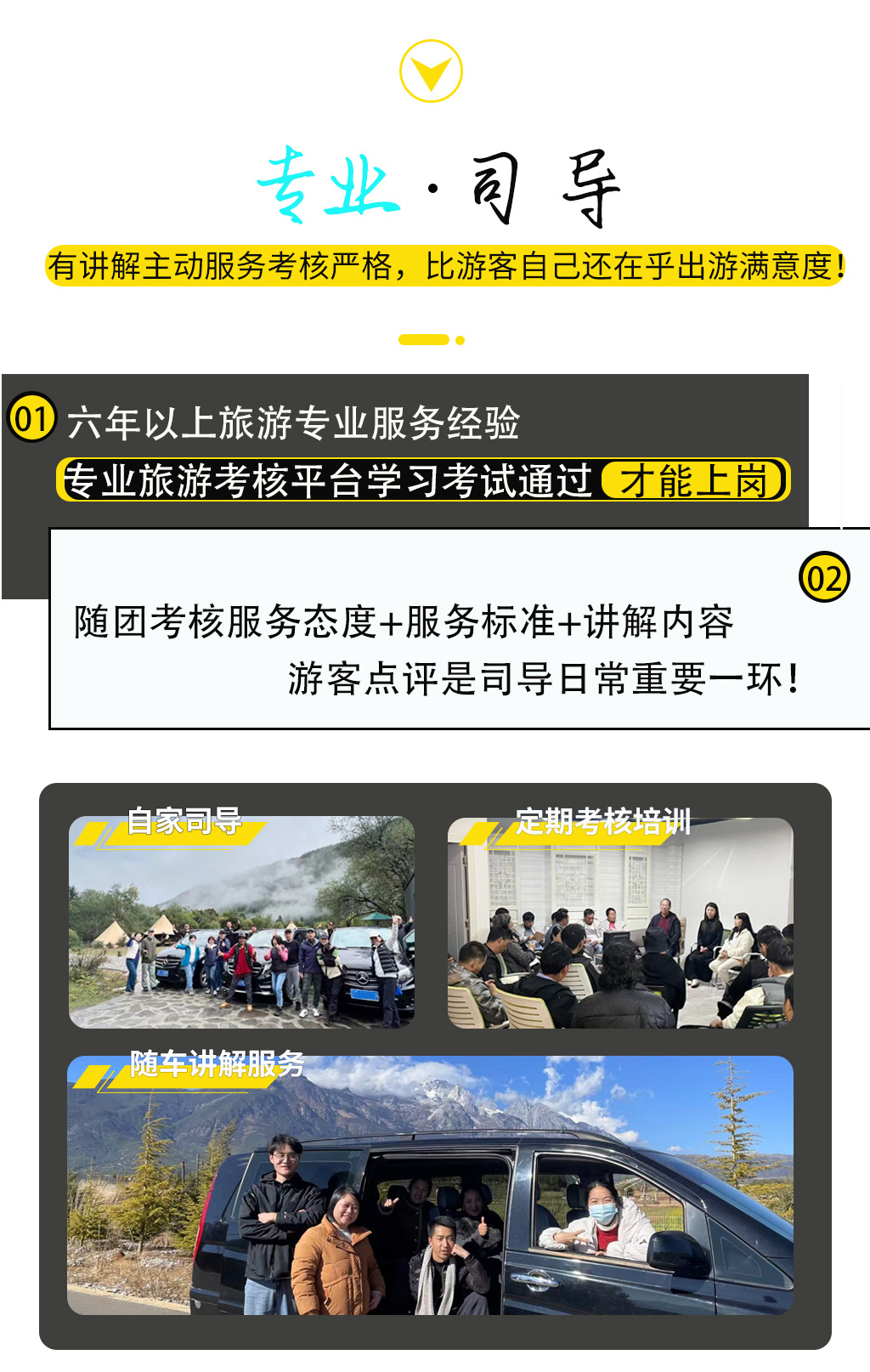 5、导游:司机兼向导,无导游(服务时间8:00-18:00),提供代办住宿代购门票等服务,自由活动期间无陪同。