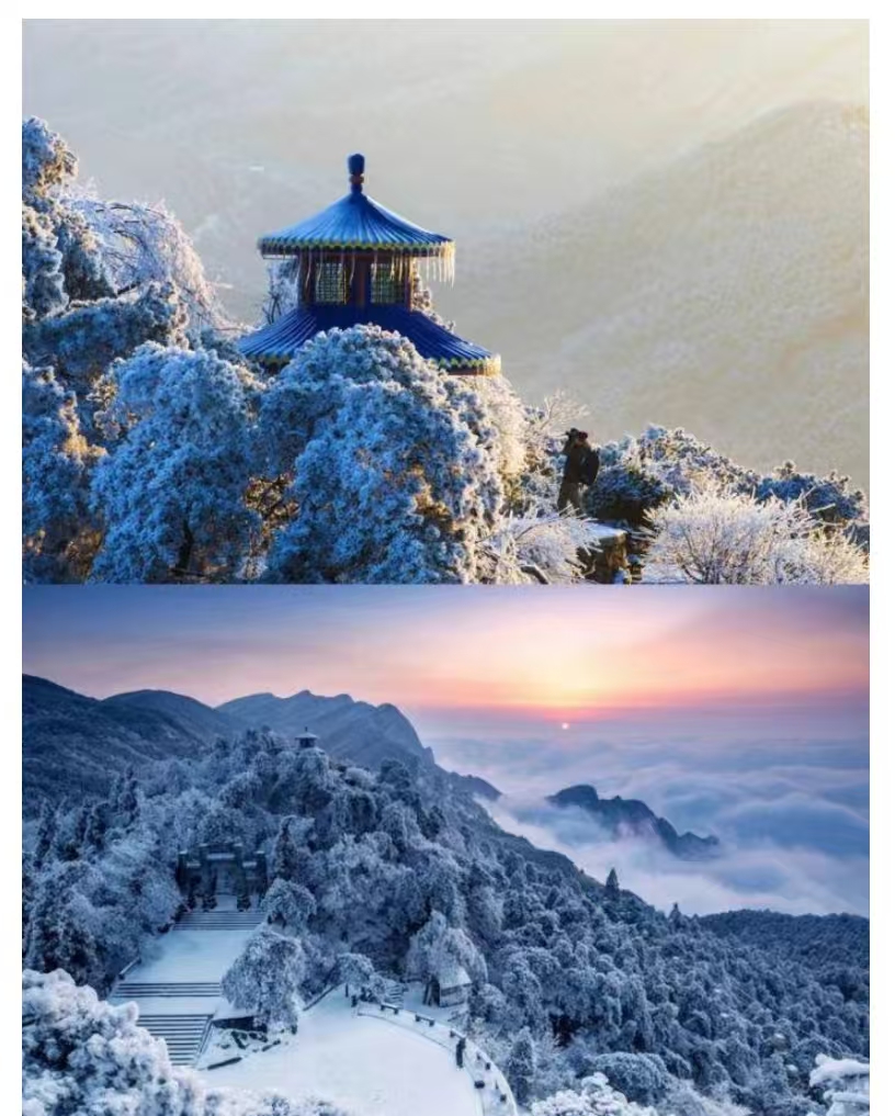 整个山峰都变得如梦如幻。雪花飘落在山间,将每一寸土地都装点得如诗如画