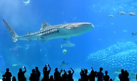 3.世界最大的蜕鲨展馆和亚克力玻璃,其展馆高达63m,亚克力玻璃宽达39.6米,高8.3m,650mm,重达250t;
