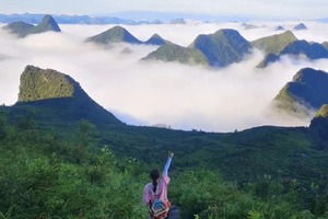 莫六公顶位于阳山县南缘,海拔1008米,与英德市和清新区毗邻。莫六公为旗山余脉,山体本身其貌不扬,但行走于它长长的山脊线上,可以俯瞰阳山杜步和清新白湾境内上千座喀斯特峰丛!
