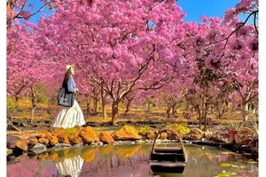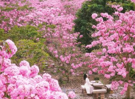 景点一:几十万平米的紫花风铃,姹紫千红的紫花风铃盛开,会让你深深的感到震撼。