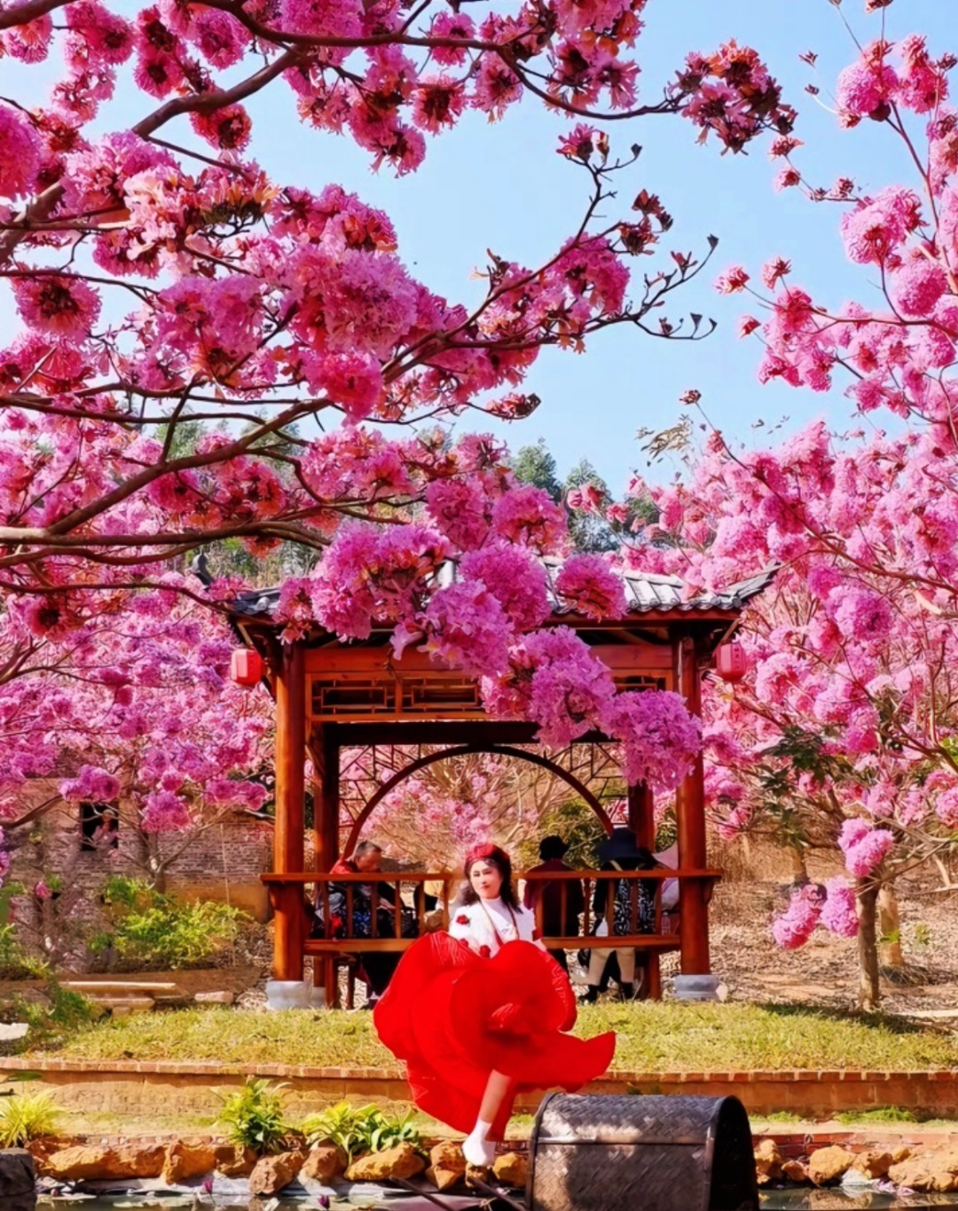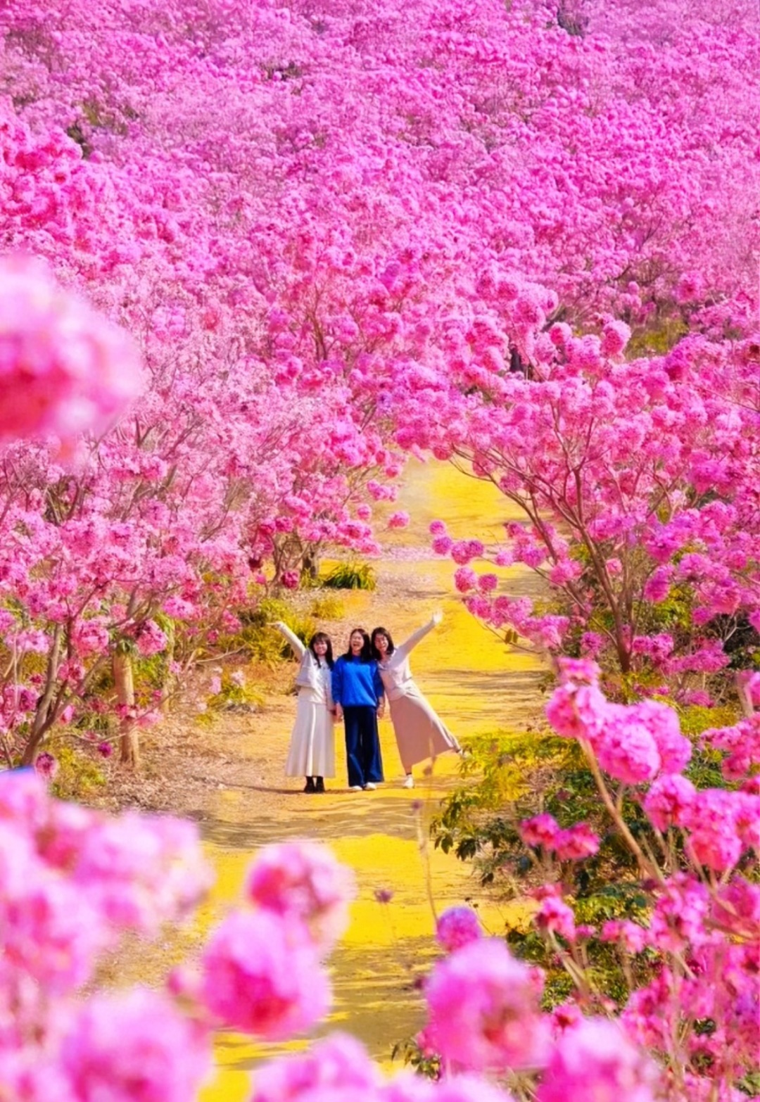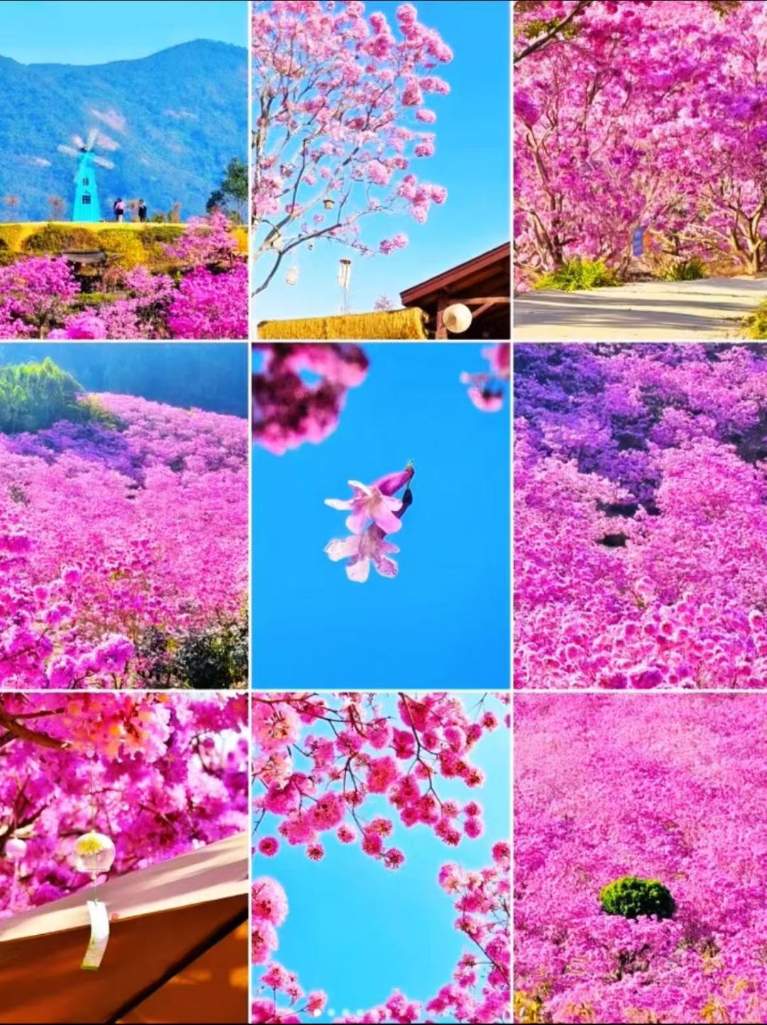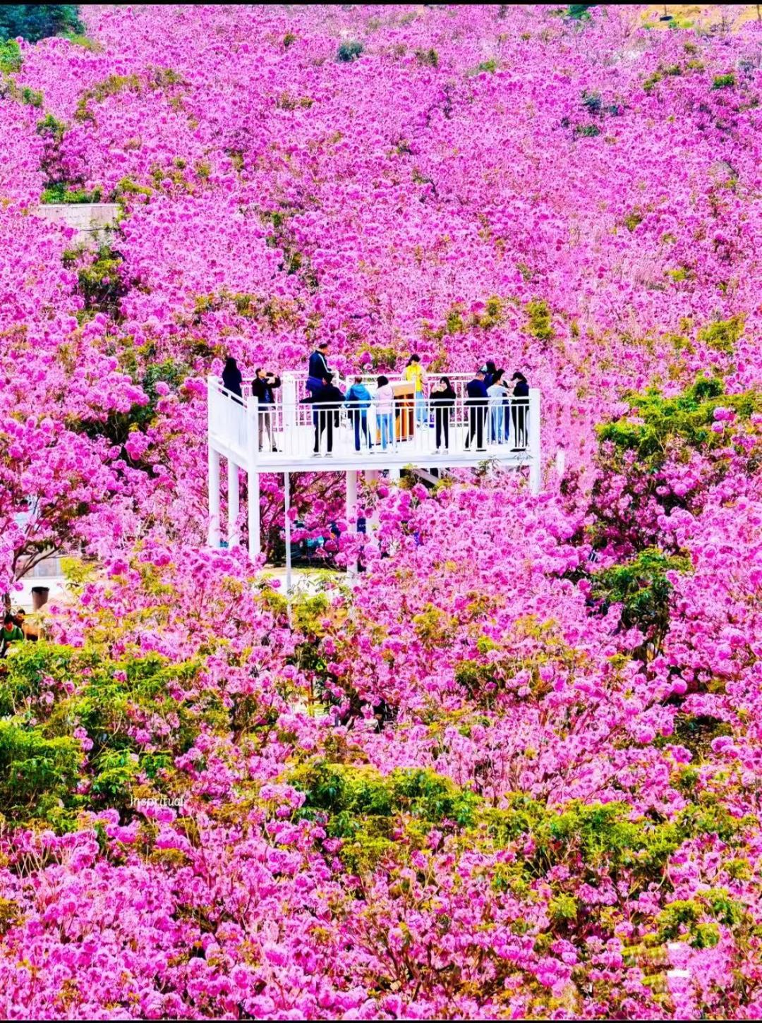 14:000左右抵达紫花风铃景区绿美生态园,40万平方米的紫花风铃,满树铃铛、姹紫千红的紫花风铃盛开,构成一幅美如童话的仙境,会让你深深的感到震撼!摄影的天堂!