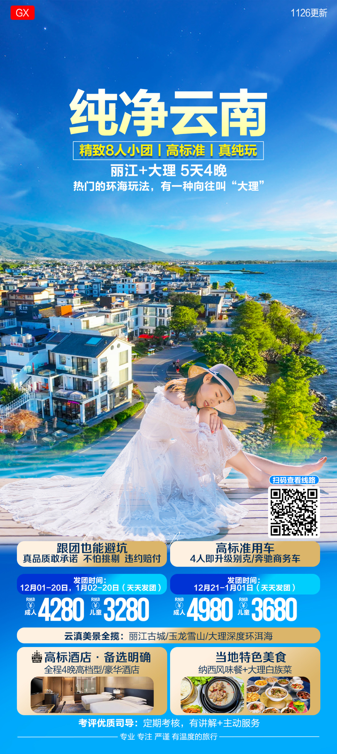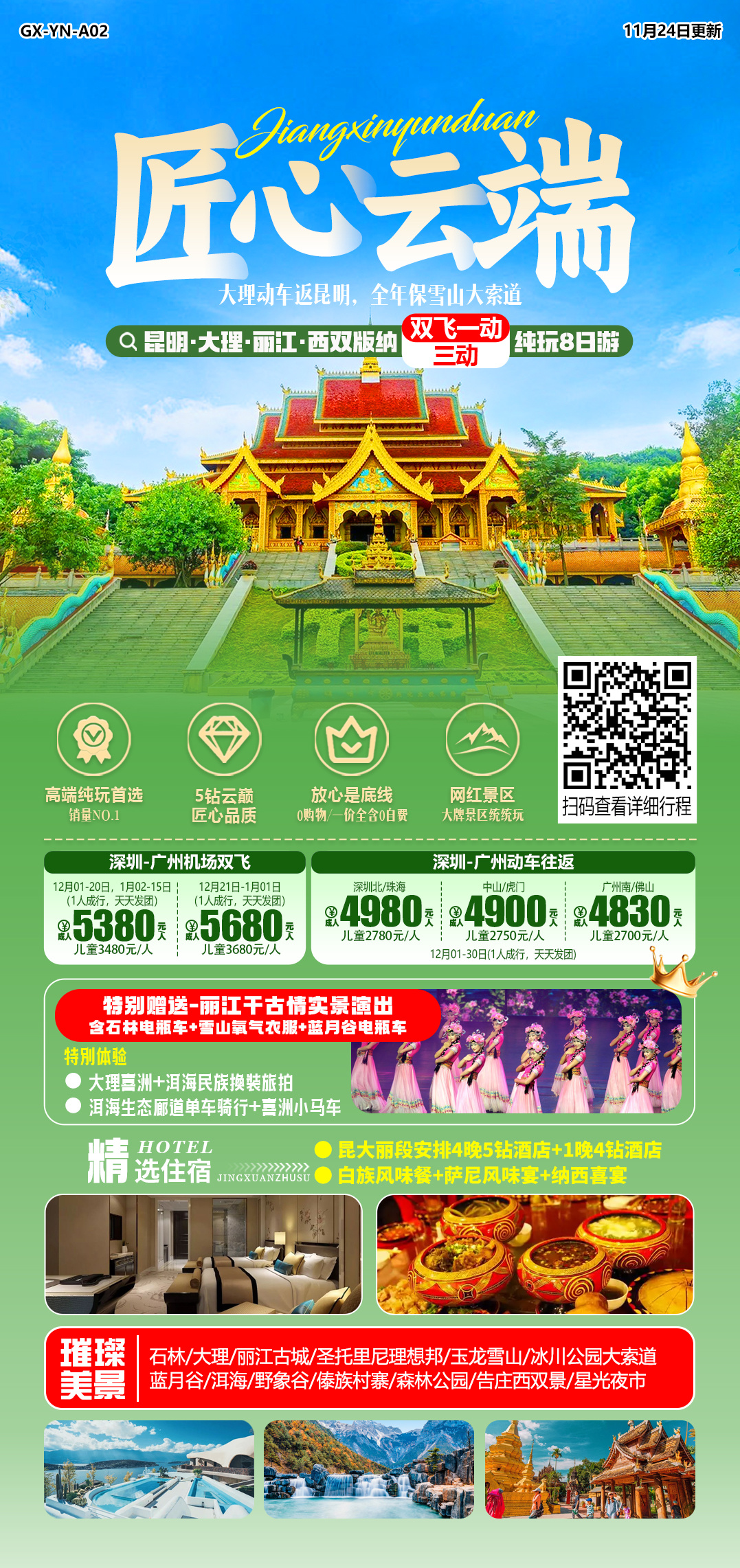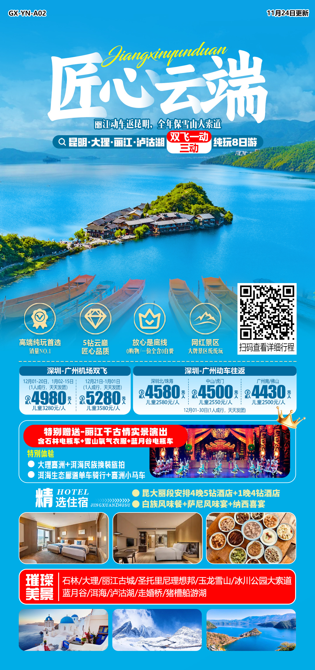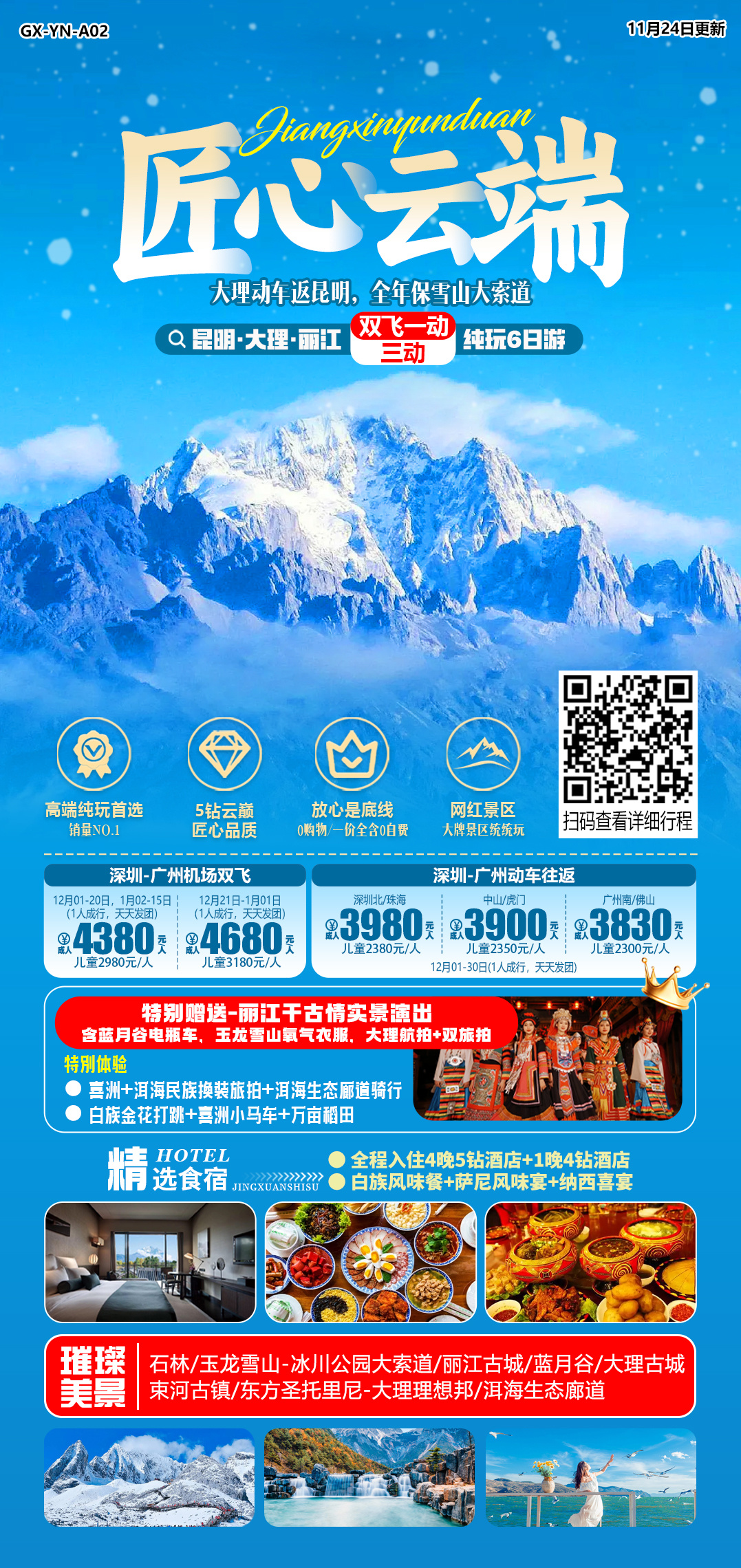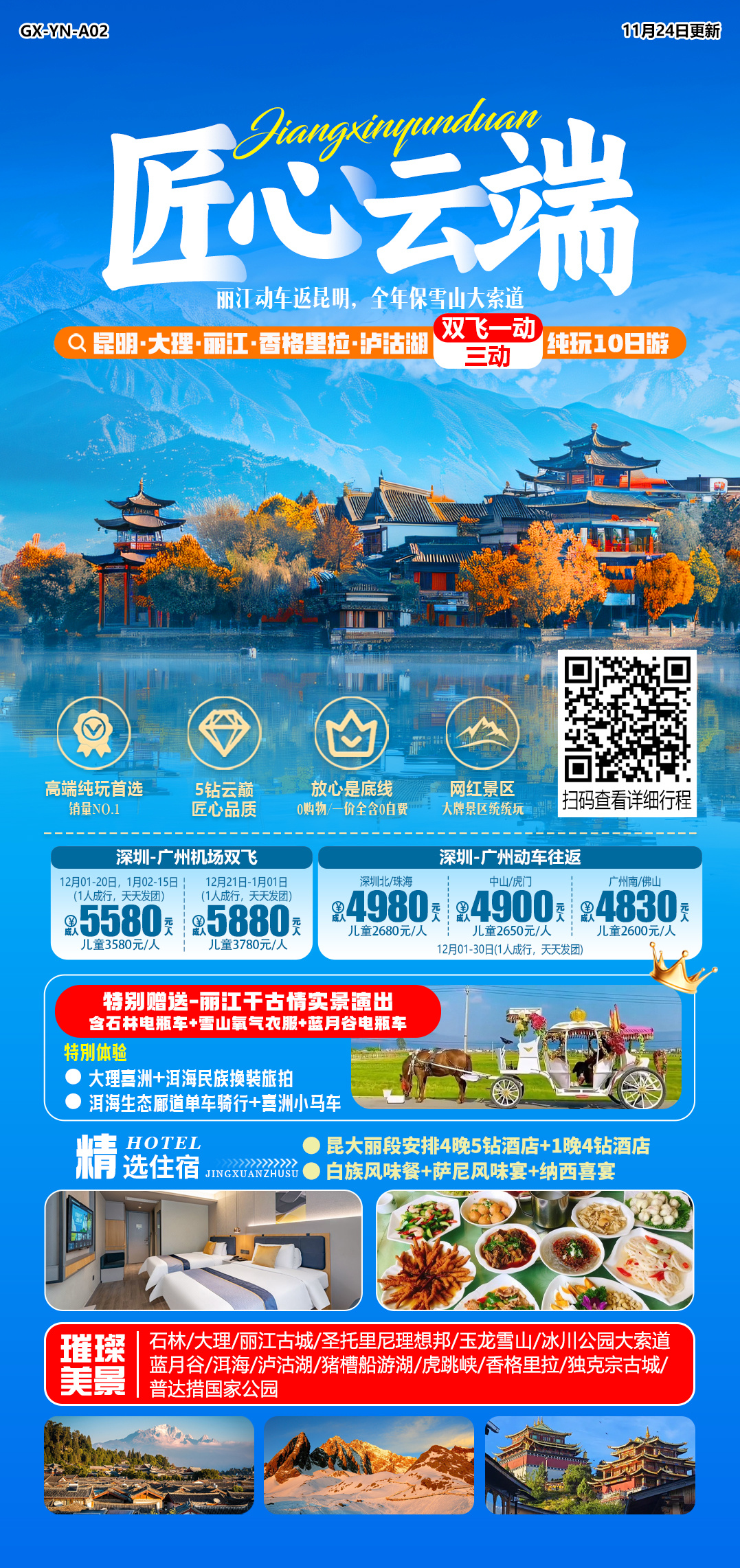 匠心云端丨昆明 大理 丽江双飞/双高纯玩6日游