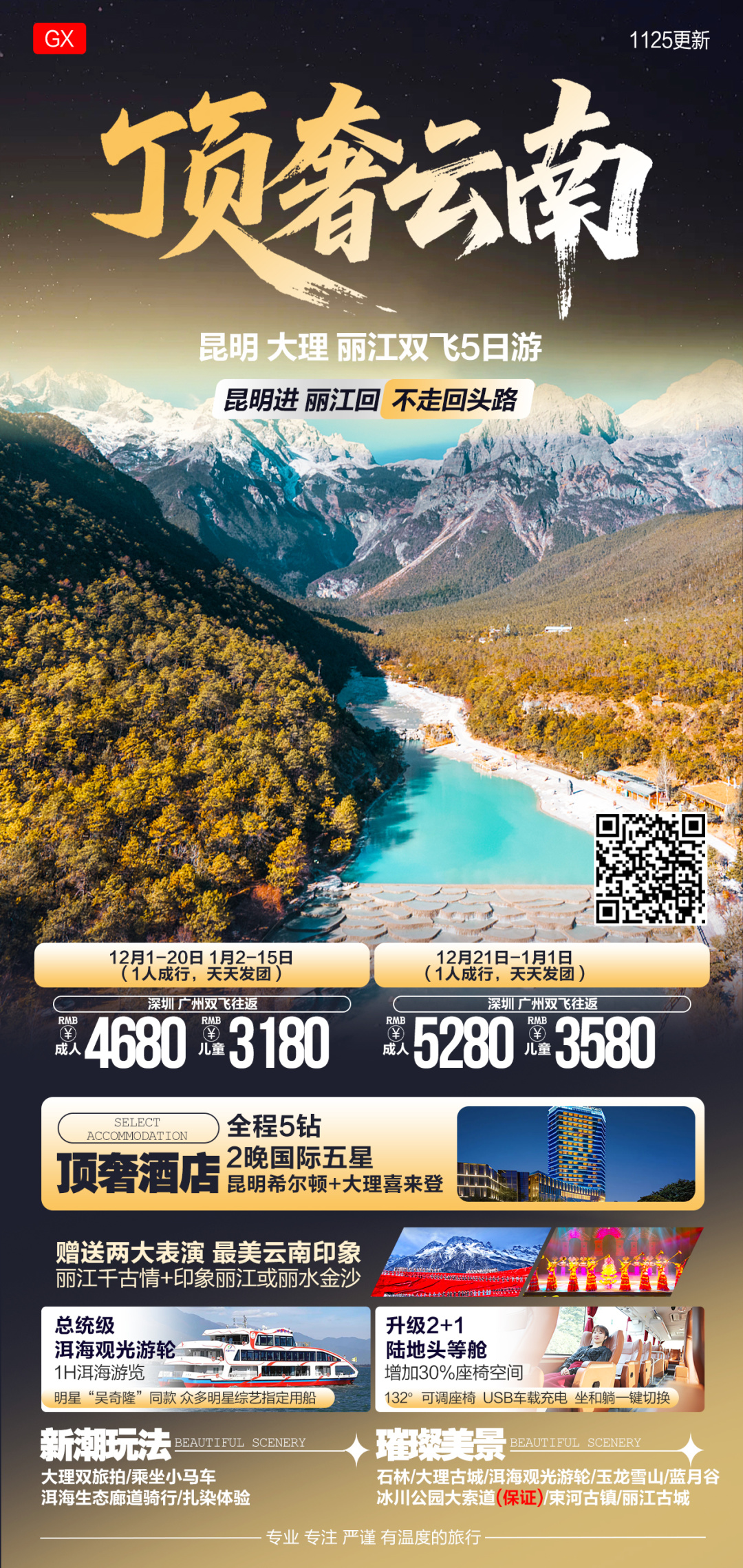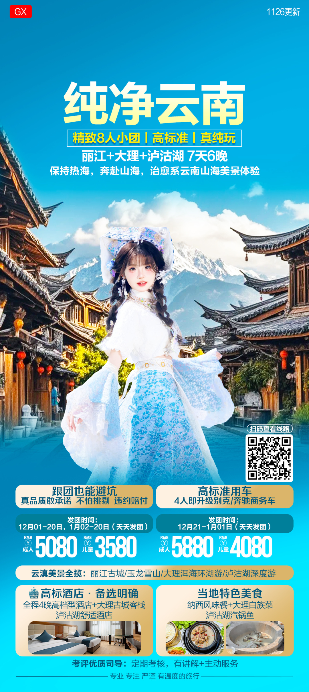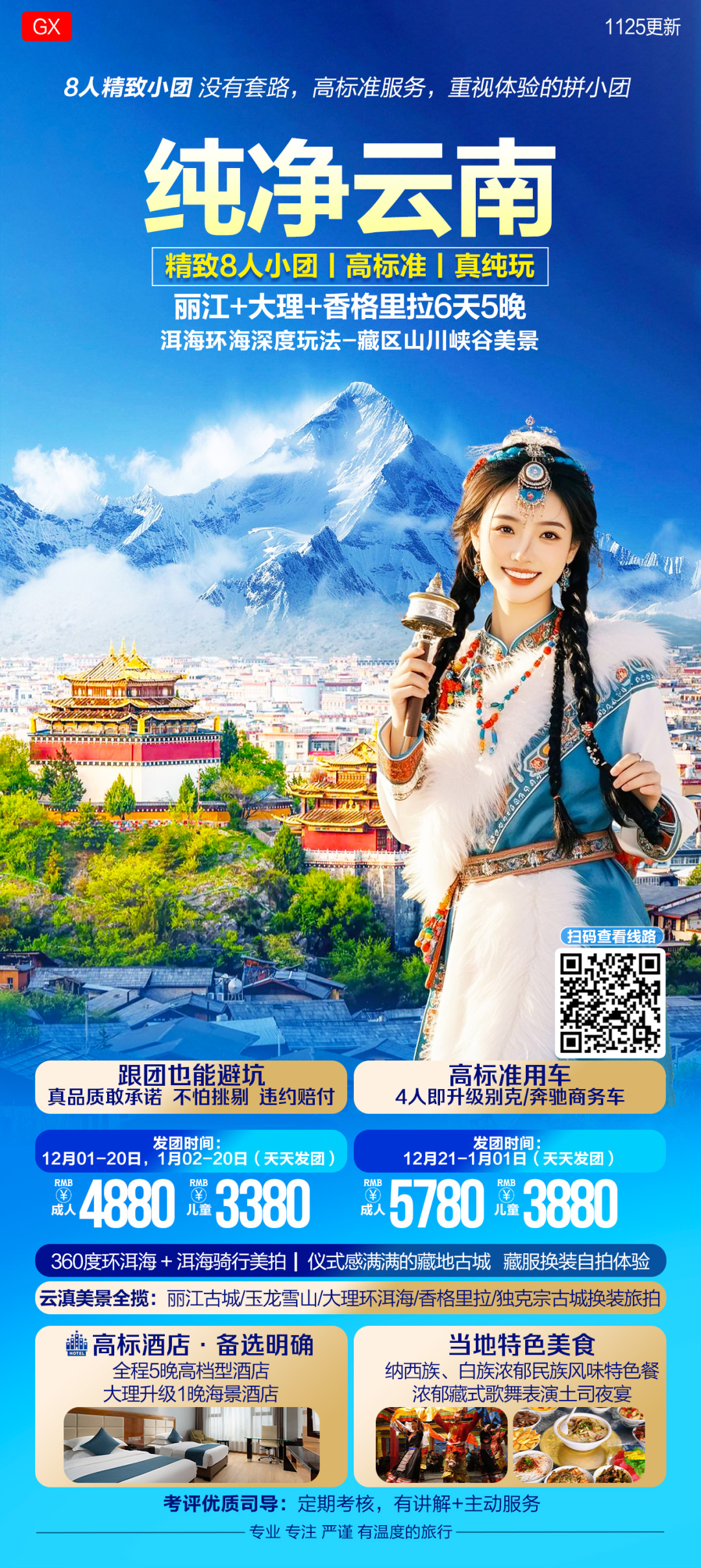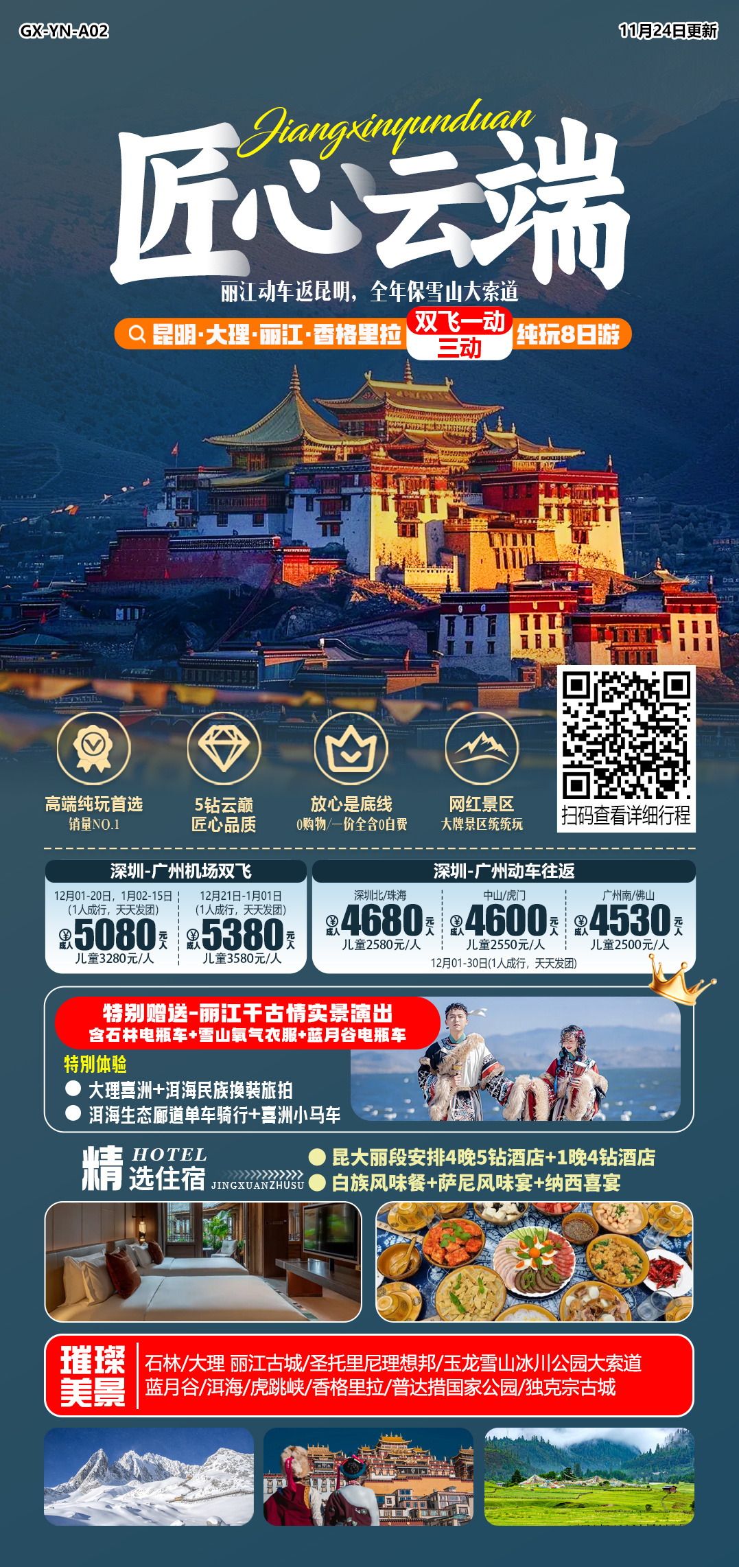 匠心云端丨昆明 大理 丽江双飞/双高纯玩6日游
