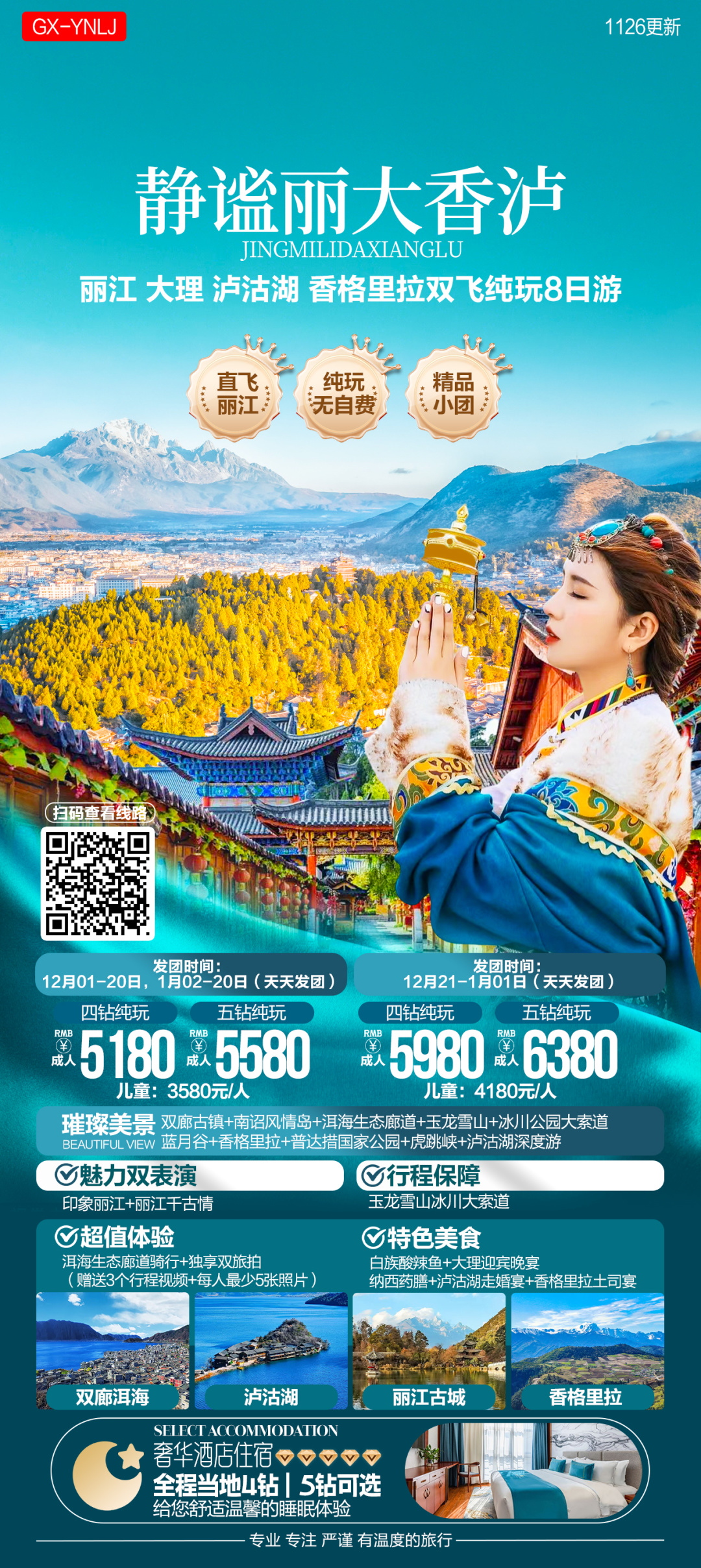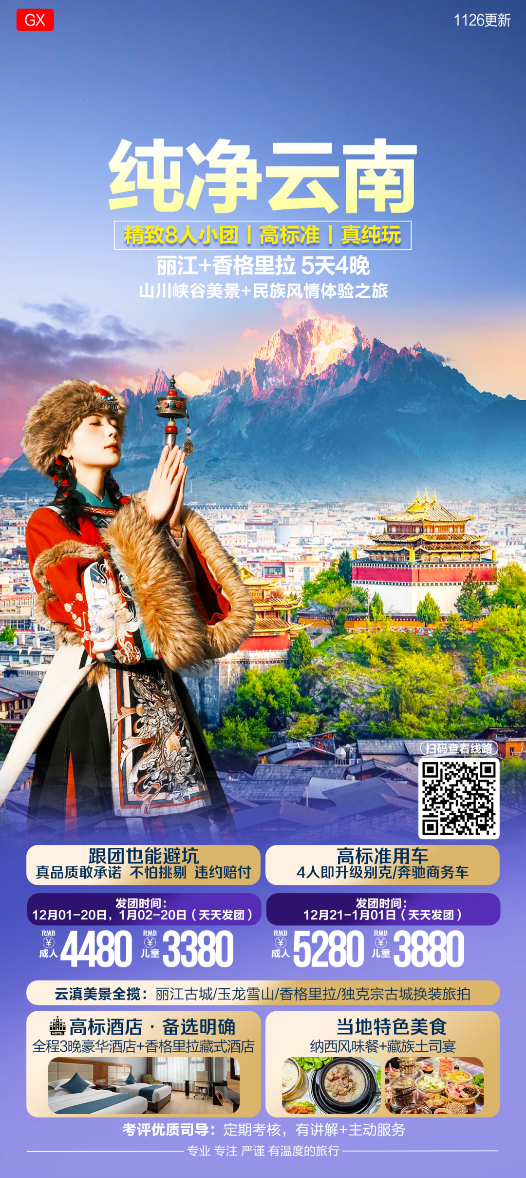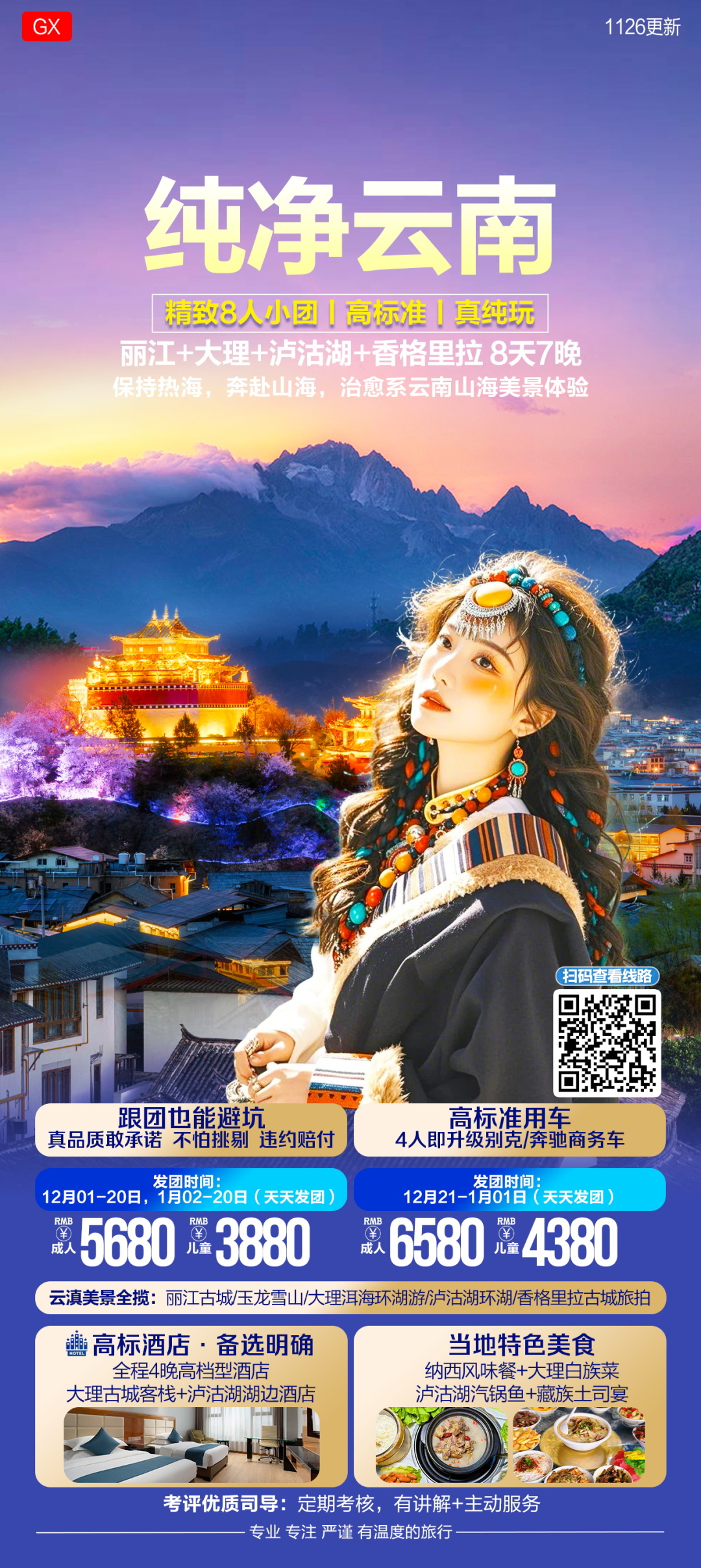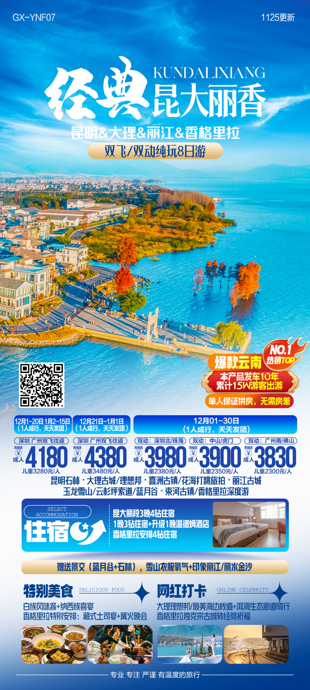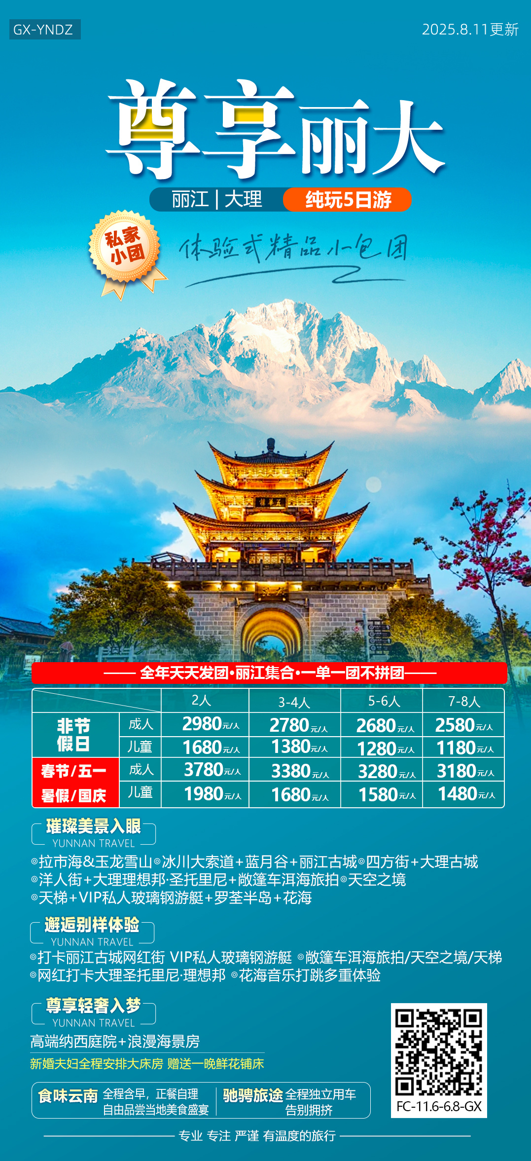 匠心云端丨昆明 大理 丽江双飞/双高纯玩6日游
