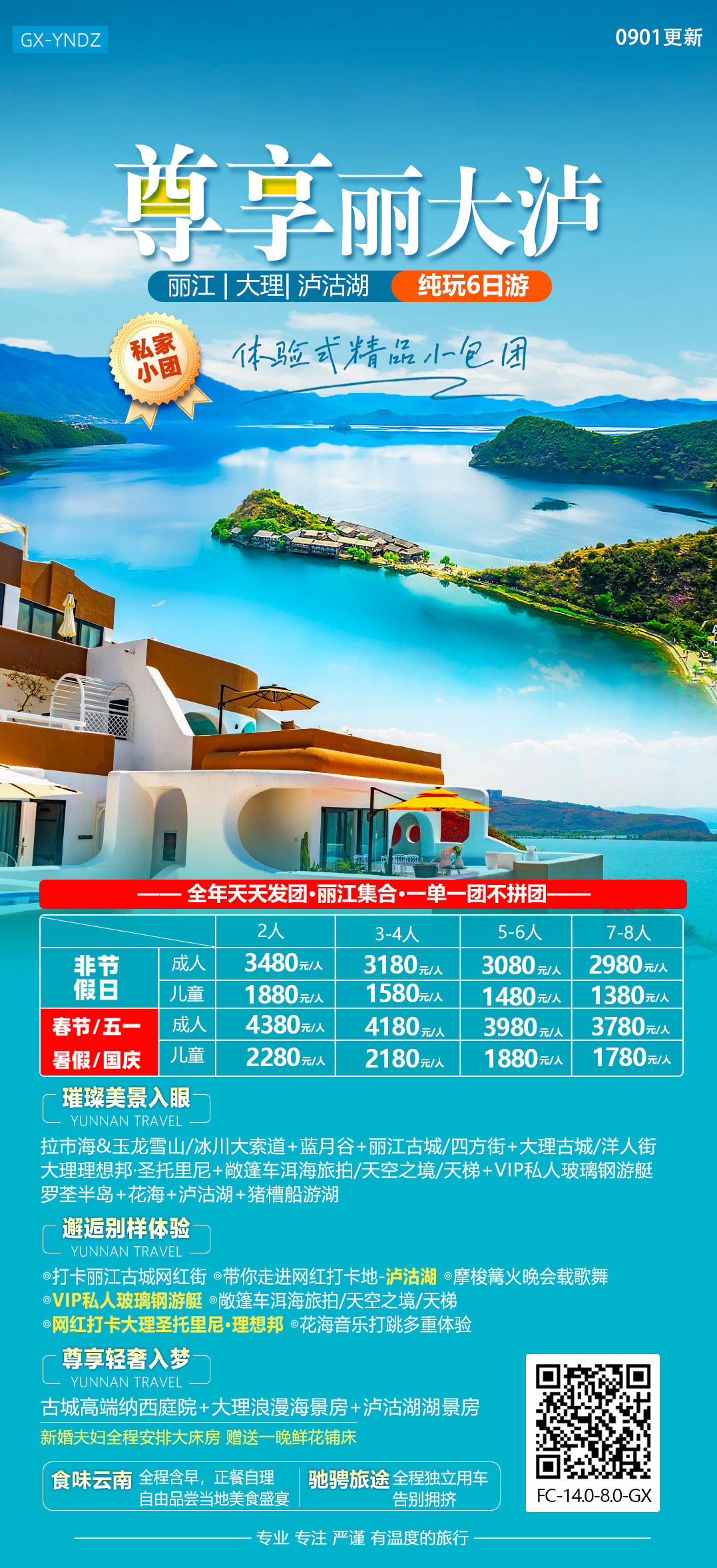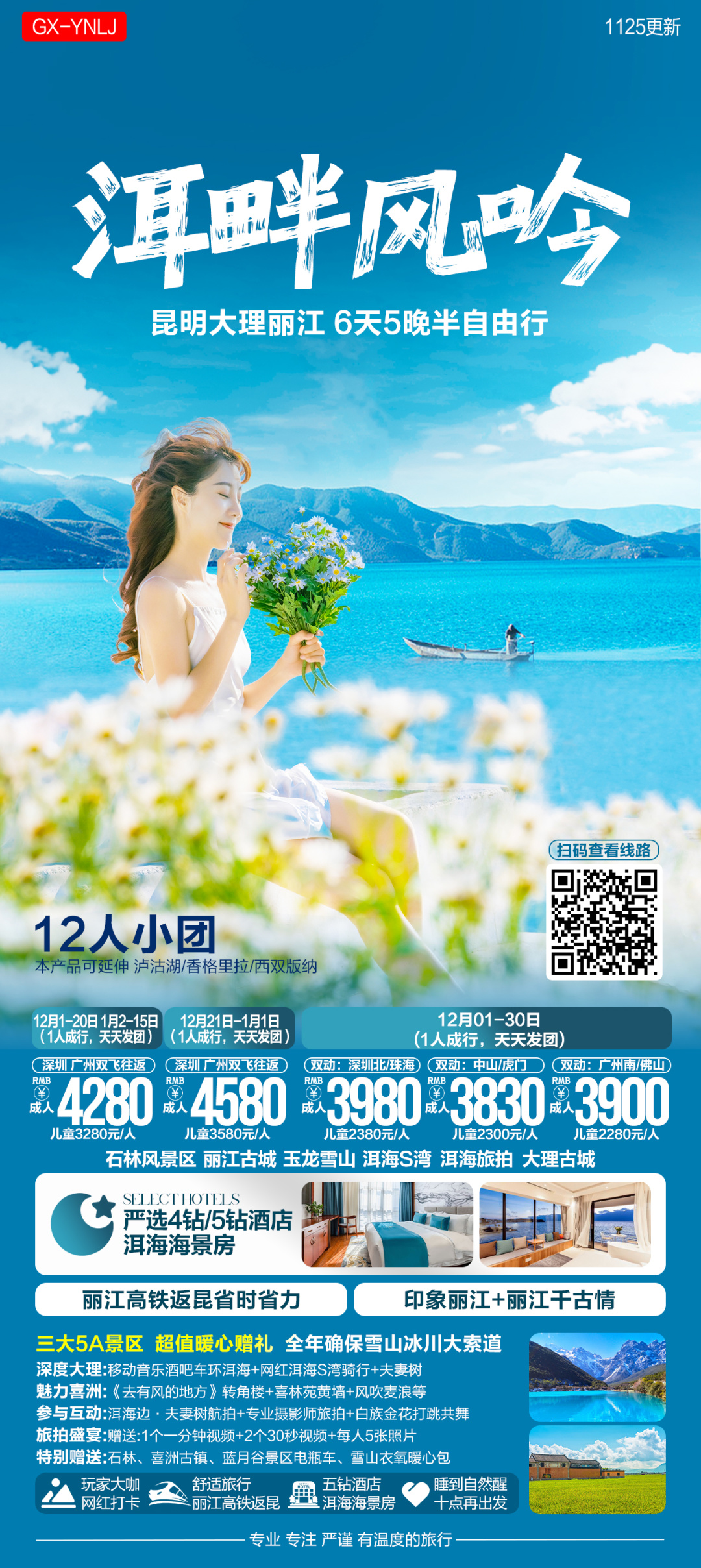 洱畔风吟:昆明|大理|丽江动车度假 6 日游( 12 人纯玩团)