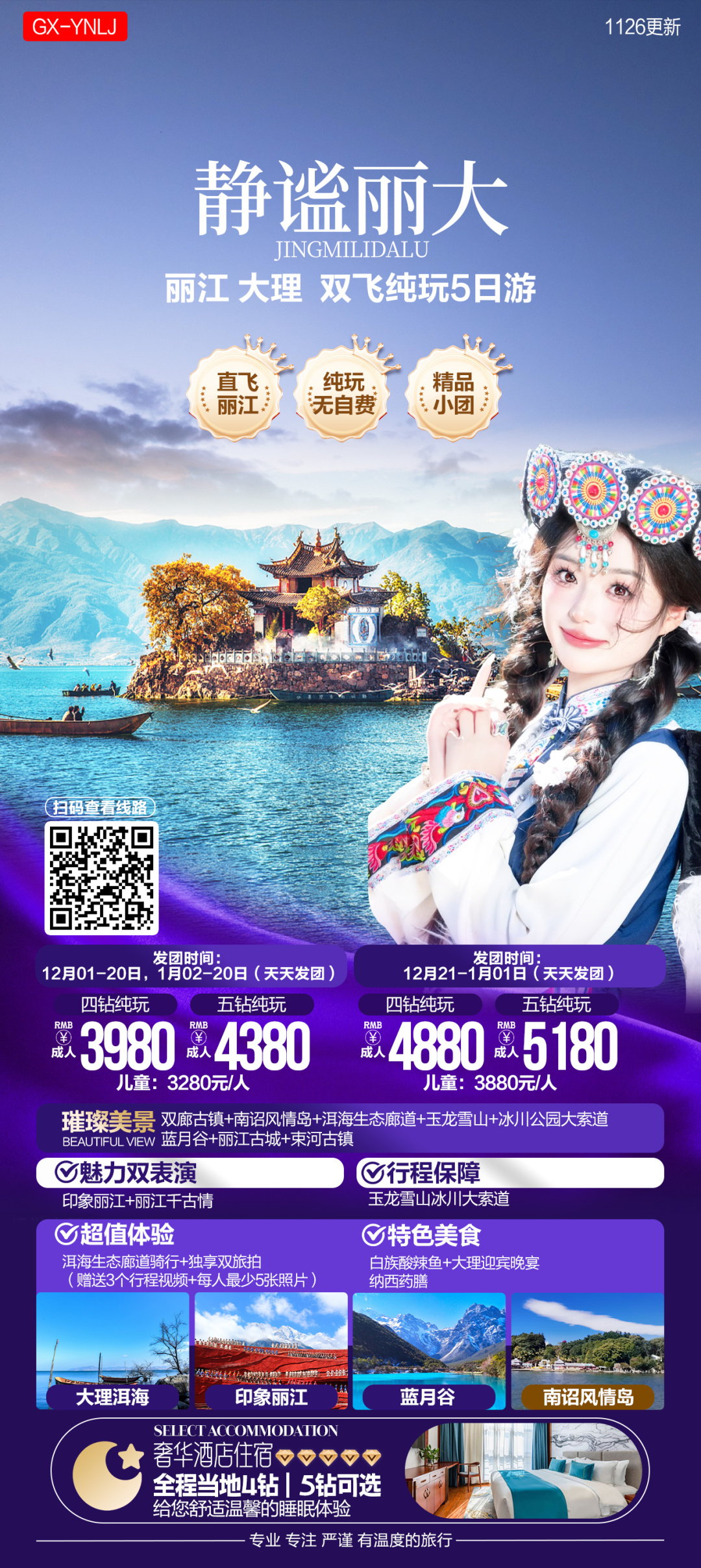 经典云南丨昆明 大理 丽江 纯玩旅拍6日游