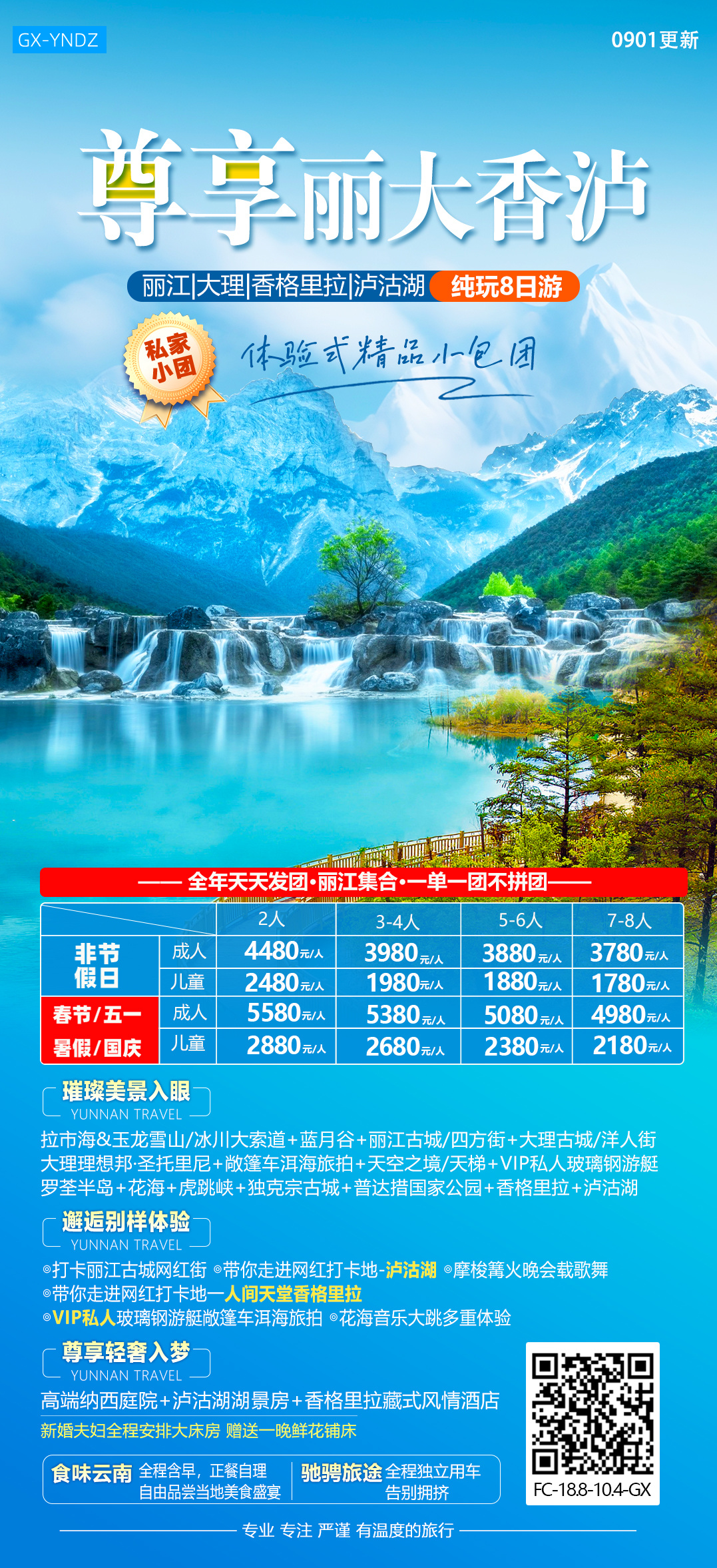 璀璨美景:双廊古镇+南诏风情岛+洱海生态廊道+玉龙雪山+冰川公园大索道+蓝月谷+泸沽湖+香格里拉