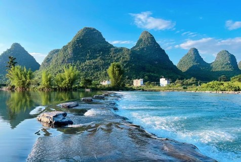 09:30 左右到达起点,徒步热身。沿河边开始徒步,到达漓江码头过渡(坐船过渡,要注意安全),沿途可看到黄布滩倒影(二十元人民币背景)、黄布滩、九龙画山、兴坪古镇、下龙风光......