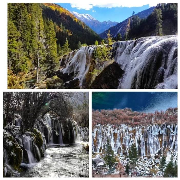 九寨沟的景观主要分布在树正沟、日则沟、则查洼沟三条主沟内,这三条沟略似"丫"字形。景区内有九寨沟最宽、最高、最雄伟壮观的三大瀑布;珍珠滩瀑布、诺日朗瀑布、熊猫海瀑布,景区内共有一百多个高山湖泊及数十处高低不一的流泉飞瀑等景观。最美最奇特的是九寨沟的水,清冽透底,变幻无穷。