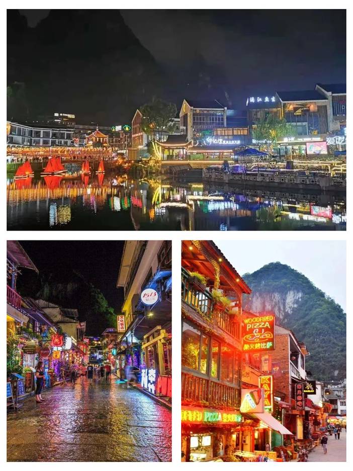 晚上自由活动。夜里,华灯初上,眩目的霓虹灯惊醒了中国洋人街—【阳朔西街】, "不逛洋人街,等于没到阳朔来"。在这里,石板古道与清代砖瓦房遥相辉映,再搭配上现代化的特色小店,浪漫风情尽显,这样的古道适合约上三五知己畅聊,和另一半在异国的西街感受浪漫。