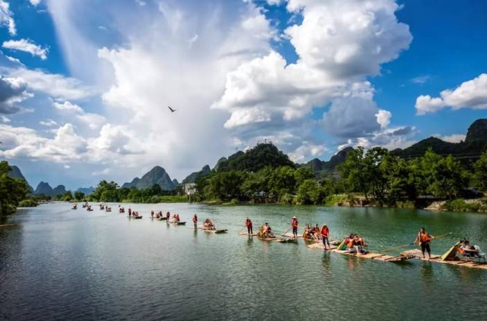 14:00前往【遇龙河多人竹筏】码头(门票已含,游览时间约为1小时)人称“小漓江”,不是漓江胜似漓江。在其上泛舟漂流,赏两岸桂林山色,才不虚此行。两岸山峦百态千姿,河畔翠竹叠嶂,蕉临四季常青,沿岸地稻田一年四季颜色不断变化,田野里一片生机勃勃,诗情画意尽显其中。