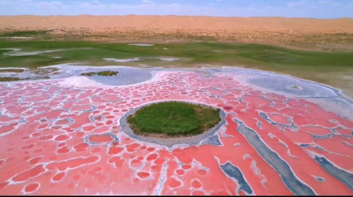 今日途径2026年度西北地区最火爆网红打卡点【地球心脏-乌兰湖】,在腾格里沙漠深处的无人之境,有一颗鲜红的,正在跳动的“地球之心”,这里没有人烟,也没有信号,这是一片炙热的红色湖泊,在地球上沸腾,就像是地球跳动的脉搏。你在地图上也找不到它的位置,所以请记住它的名字—乌兰湖。走在湖边,就像行走在一盘巨大的粉色调色板上,如果不亲眼所见,你绝对不会相信这些现切的雪花牛肉和灌满石榴汁的湖泊是真实存在的。