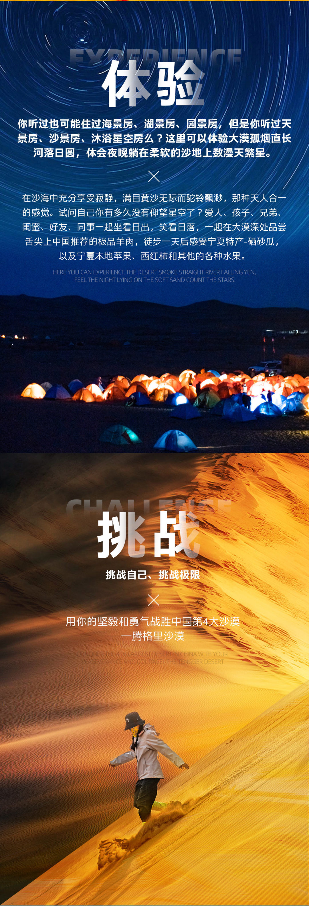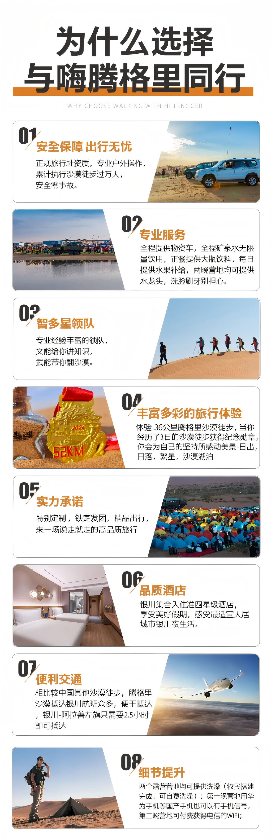 01 此腾格里徒步活动不同于传统旅游线路,对参加队员的安全、环保和团队协作精神要求较高,要求体现中华传统美德。全程徒步过程中,严禁丢弃任何不可降解垃圾,组委会提供大型编织袋垃圾袋,所有垃圾请归拢至垃圾袋,由物资车统一运出沙漠。