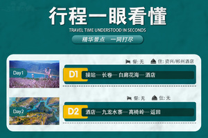 此次旅游总共跨越2天时间,以上行程领队会根据实际情况作相应调整,但总行程不变。