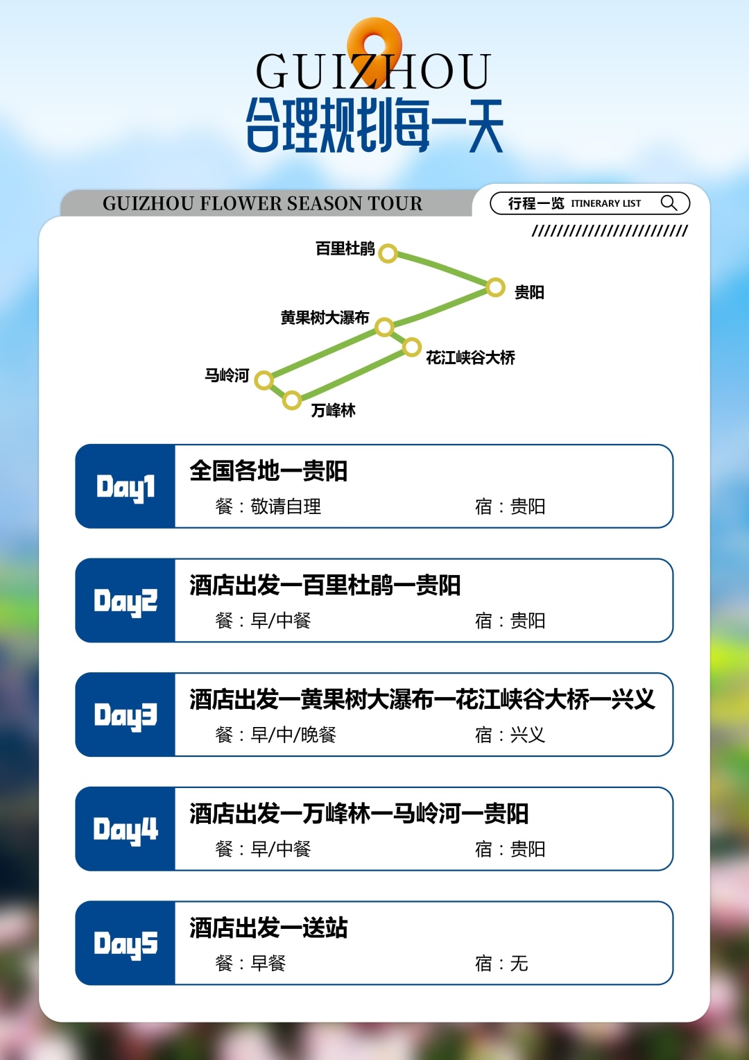 3. 不含景区必消小交通:百里杜鹃摆渡车70元/人+黄果树观光车及保险60元+万峰林观光车50元,费用需自理总合计180元/人