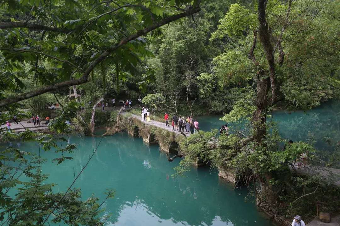 早餐后约7:00乘车前往被联合国教科文组织誉为“地球上同纬度的最后一颗绿宝石”的黔南荔波(车程约4小时),中餐后乘车(10分钟)抵达国家AAAAA级风景区【小七孔】,游玩时间:不少于3小时;景点之间需换乘电瓶车(须自理电瓶车50元/人,走路无法游览)小七孔景区因一座建造于道光15年间(1836年)的小七孔石桥而得名;景区被称之为“超级盆景”,集山、水、洞、林、湖、瀑布等为一体,在长不到2公里的峡谷内,起迭着68级瀑布,顺贽而下,奔泻而去。