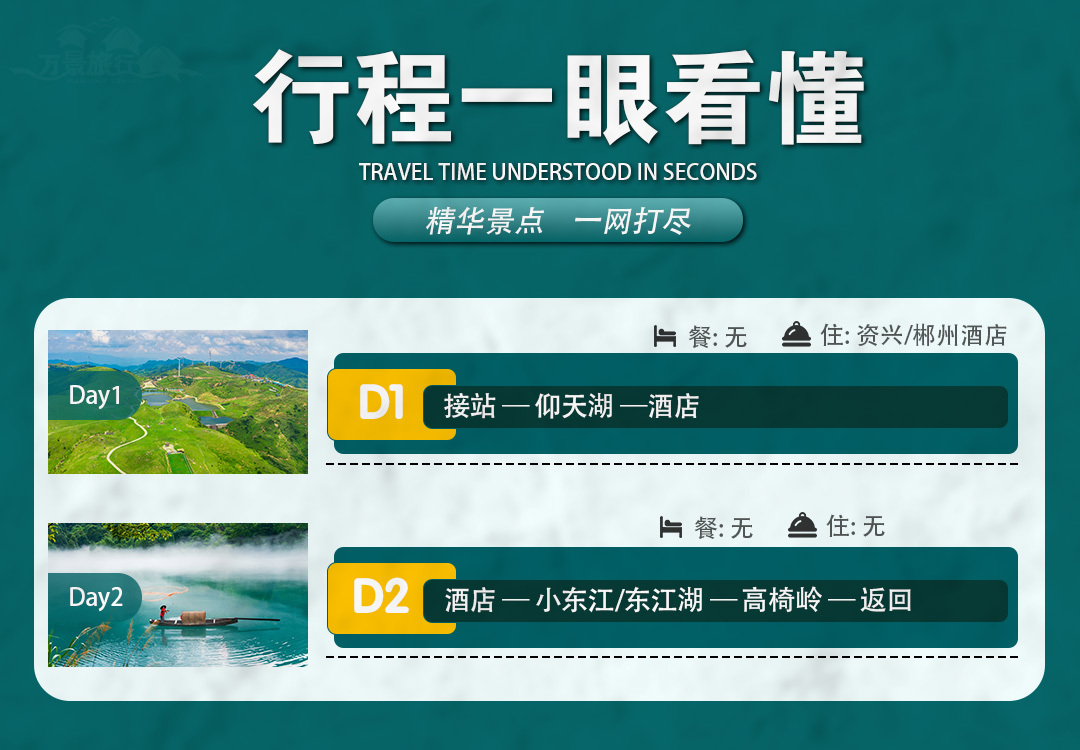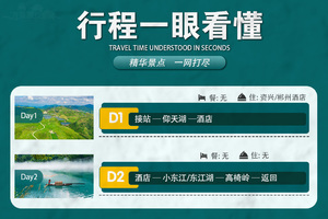 此次旅游总共跨越2天时间,以上行程领队会根据实际情况作相应调整,但总行程不变。