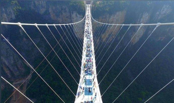 抵达后中餐,餐后游览【玻璃桥大峡谷景区】,大峡谷玻璃桥是世界首座斜拉式高山峡谷玻璃桥,并创下世界最高最长玻璃桥、首次使用新型复合材料建造桥梁等多项世界之最。
