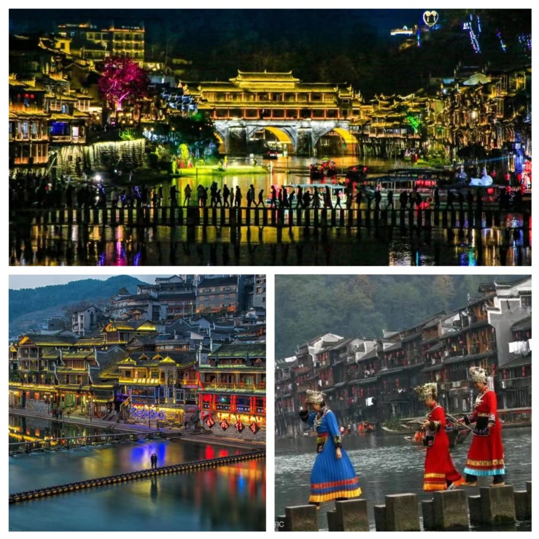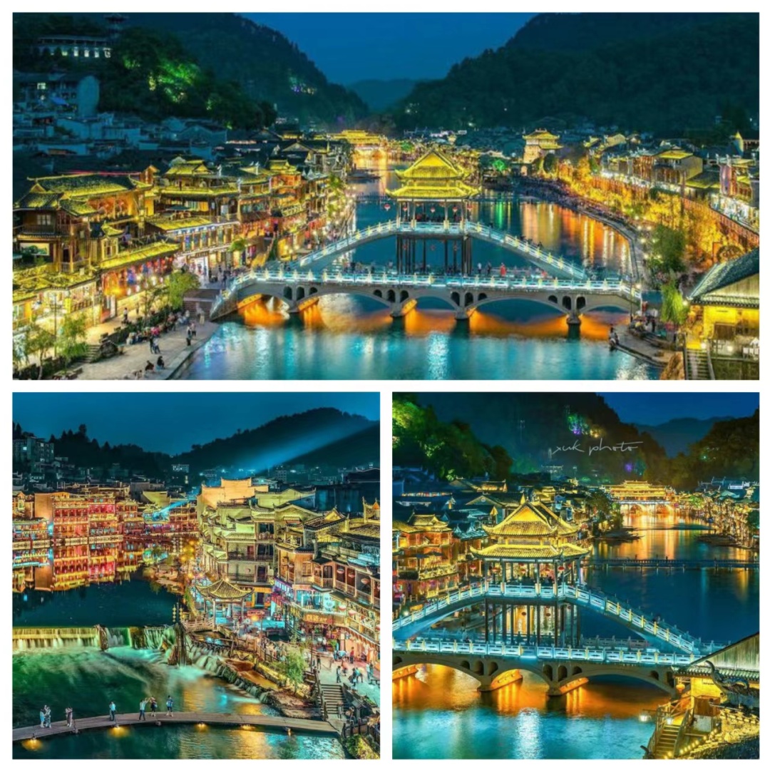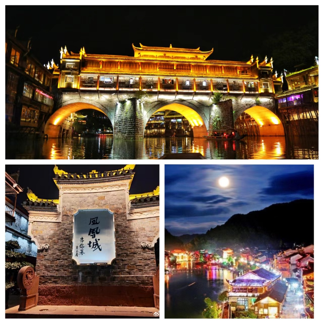 下午抵达【凤凰古城】后办理入住,然后自由活动。晚上可看看凤凰夜景,凤凰夜景非常迷人,吊脚楼上灯光点缀,沱江水面上的画布用各种色彩调配出最美丽的凤凰夜景!喝茶、咖啡、品尝当地特色小吃、美食,江边泡吧……