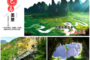 在巴马这块神秘的土地上,独特的旅游资源十分丰富,巴马寿乡探秘游和红色旅游已列为广西十大旅游精品线路之一,境内有桃花源般令人难以忘怀的盘阳河秀丽风光,有被英国皇家探险队八七年宣布称之为天下第一洞的“百魔洞”、有令人如梦如幻般经历三昼夜的“祈寿宫(百鸟岩)" 水上溶洞,地下水晶般的艺术宫殿“水晶宫”让人一步一叹;还有美如西湖的赐福湖风光、弄友原始森林、龙洪田园风光、西山弄友原始森林、弄友天然八卦、大洛江洲地下长廊、水晶宫脚下让人为之震撼的“长命河”、好龙天坑、交乐天坑、好和响水天坑自然景观及东山瑶族风情等旅游资源。