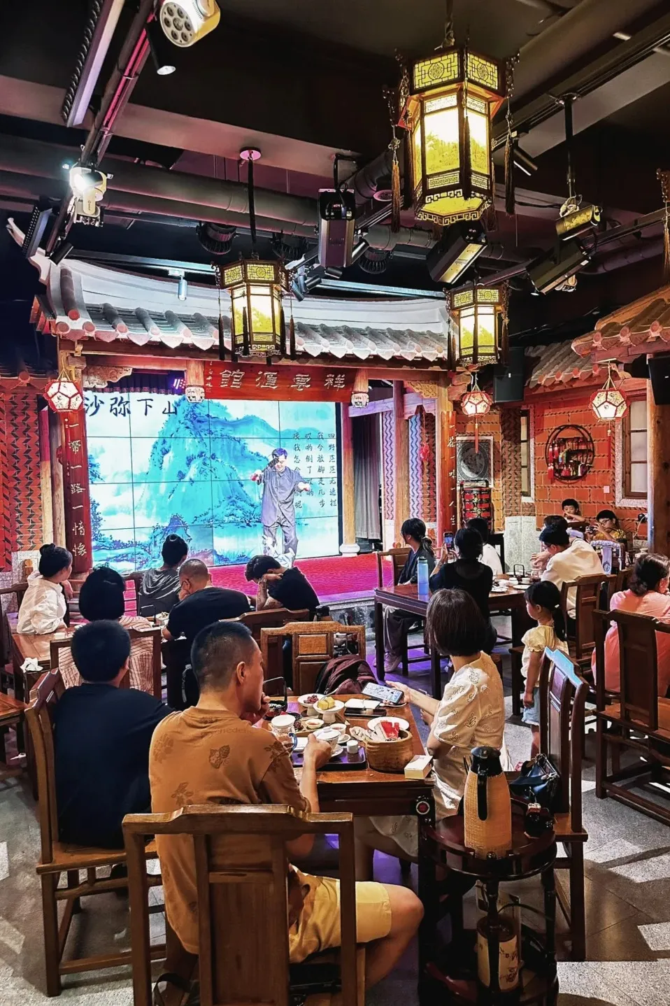 【闽南文化盛宴,吃饭听戏】(车程约5分钟,游览时间1小时):南音·布袋木偶·茶艺演出当千年古韵邂逅指尖灵动,当茶香氤氲交融袅袅弦歌,一场穿越时空的闽南文化盛宴正缓缓展开。南音,被誉为“中国音乐史活化石”,以洞箫、琵琶、二弦等传统乐器为引,表演者浅吟低唱,曲中流淌着闽南人细腻的情感与绵长的乡愁;布袋木偶戏则是指尖上的传奇,艺人以精湛技艺赋予木偶鲜活生命,举手投足间,或演绎经典故事,或再现市井百态,令人拍案叫绝。而茶艺表演,更是将东方美学展现得淋漓尽致。茶艺师手法优雅,温杯、注水、斟茶,每一环节皆蕴含着对自然的敬畏与对生活的热爱。在悠悠茶香中,南音的韵律与木偶的灵动相互映衬,带您领略闽南文化的深厚底蕴与独特魅力,让您在视听嗅的多重享受中,沉醉于这方水土的千年风华。
